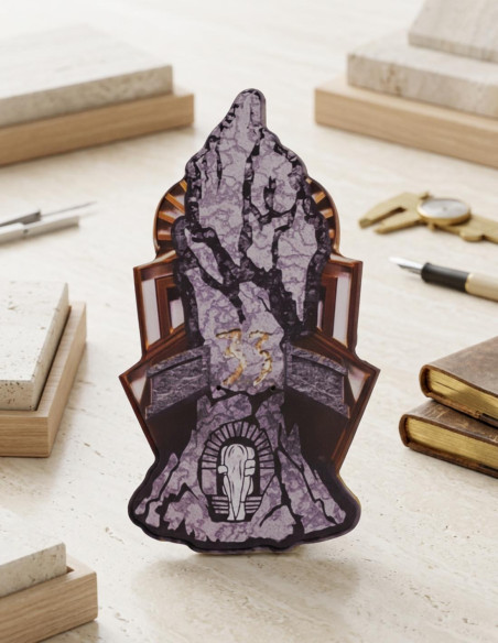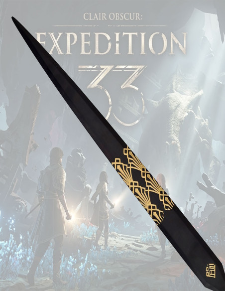 Com cada linha, cada linha de sua lâmina de aço e cada canto de seu acabamento, esta peça permite que você mostre quem você é sem palavras. A empunhadura de tons dourados e bege, com uma textura que sugere séculos de história em cada fissura, te convida a sentir que você tem em suas mãos uma peça com alma própria. A base de pedra, que a sustenta com firmeza, reforça essa ideia de que sua coleção e seu ambiente estão construídos para durar, para serem admirados e para deixar marca. A Expedição 33 ajuda a consolidar essa imagem de autoridade, de mistério e de distinção, fazendo de cada canto onde a exibe, um reflexo daquela versão sua que busca reconhecimento e respeito.