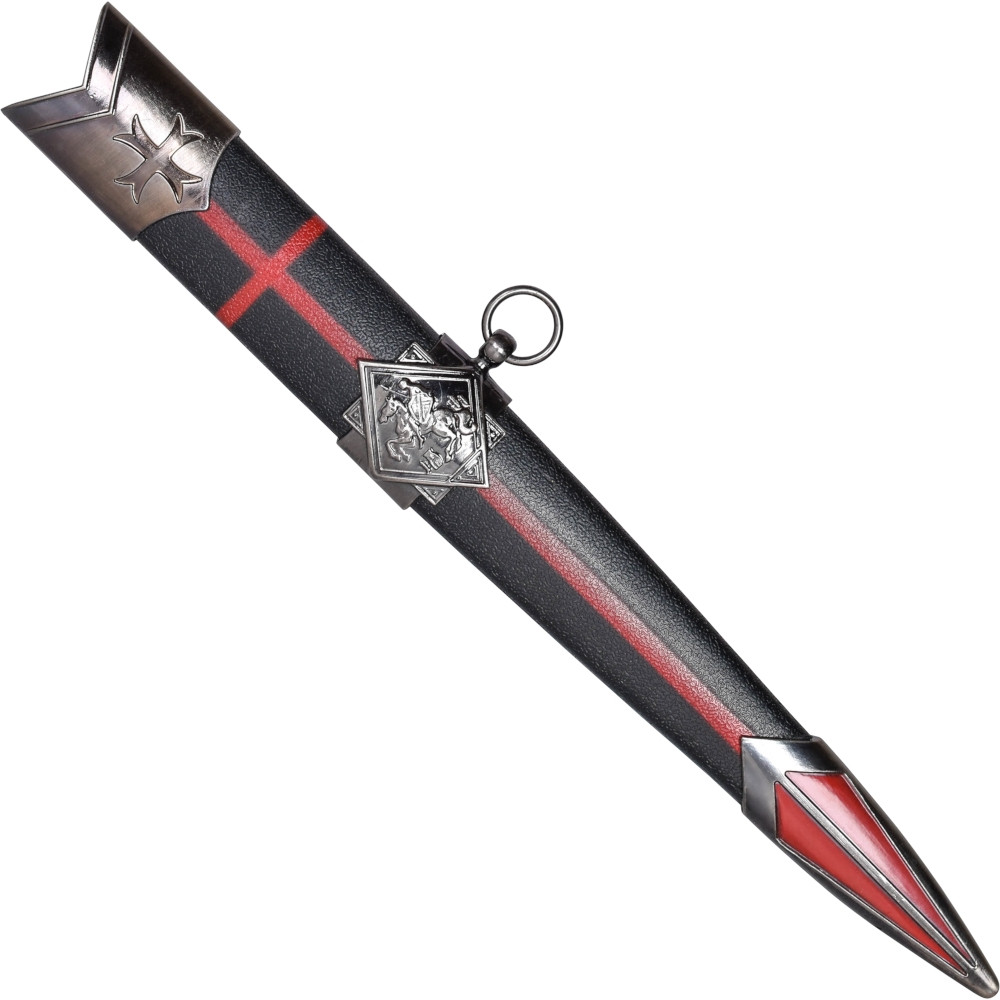 - Bainha sintética e fundida: A bainha, feita de materiais sintéticos e fundidos, oferece proteção robusta para a lâmina. Seu acabamento detalhado complementa a estética elegante da adaga, garantindo um armazenamento seguro e elegante.
