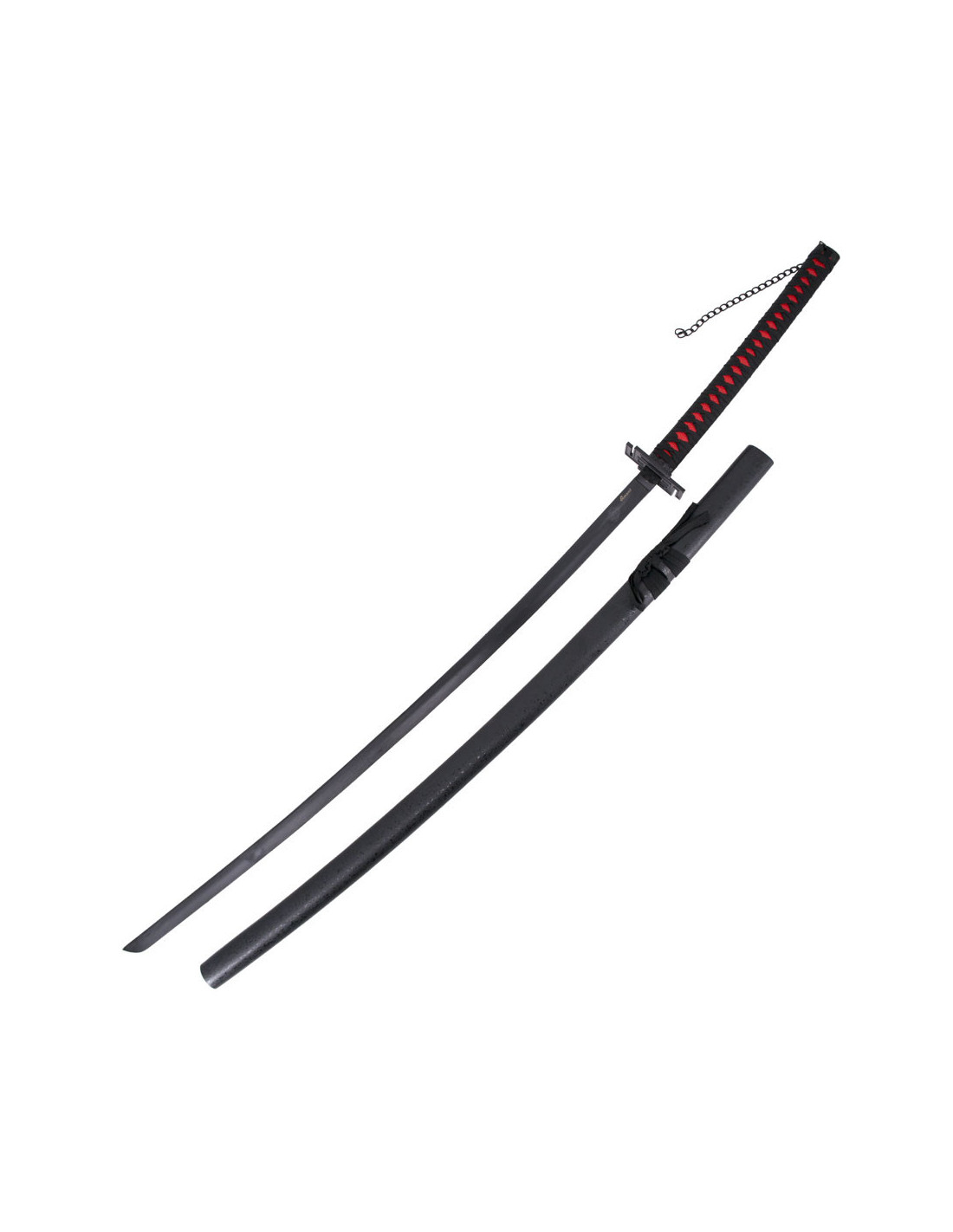 Decore sua casa no estilo samurai com a Katana Decorativa Bleach Tensa Zagetsu Ichigo Kurosaki. Esta réplica não oficial de 140 cm de comprimento apresenta uma lâmina de aço preto para um visual autêntico e sofisticado. Sua bainha preta e cabo de corda completam seu design elegante e detalhado.