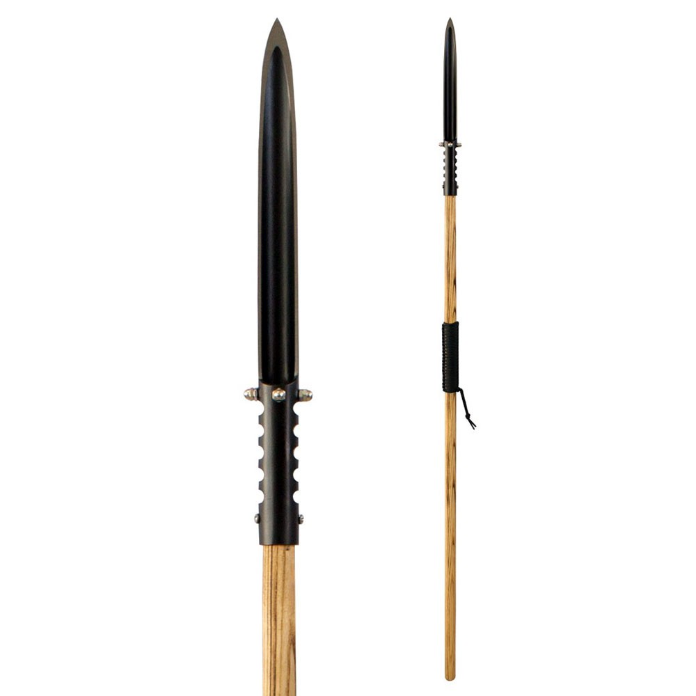 Lança funcional modelo Asmat fabricada pela casa da Condor. Esta é uma ferramenta poderosa e impressionante para ter quando você está andando pela natureza. Não há dúvida de que vai se sentir seguro com esta arma. A lâmina é de aço com alto teor de carbono 1075 com um revestimento de pó epóxi preto. O naipe é de nogueira, madeira de América Central foi utilizado para elaborar o punho durável e é terminado com um aperto suave. Uma luva de couro costurado artesanalmente completa este artigo.