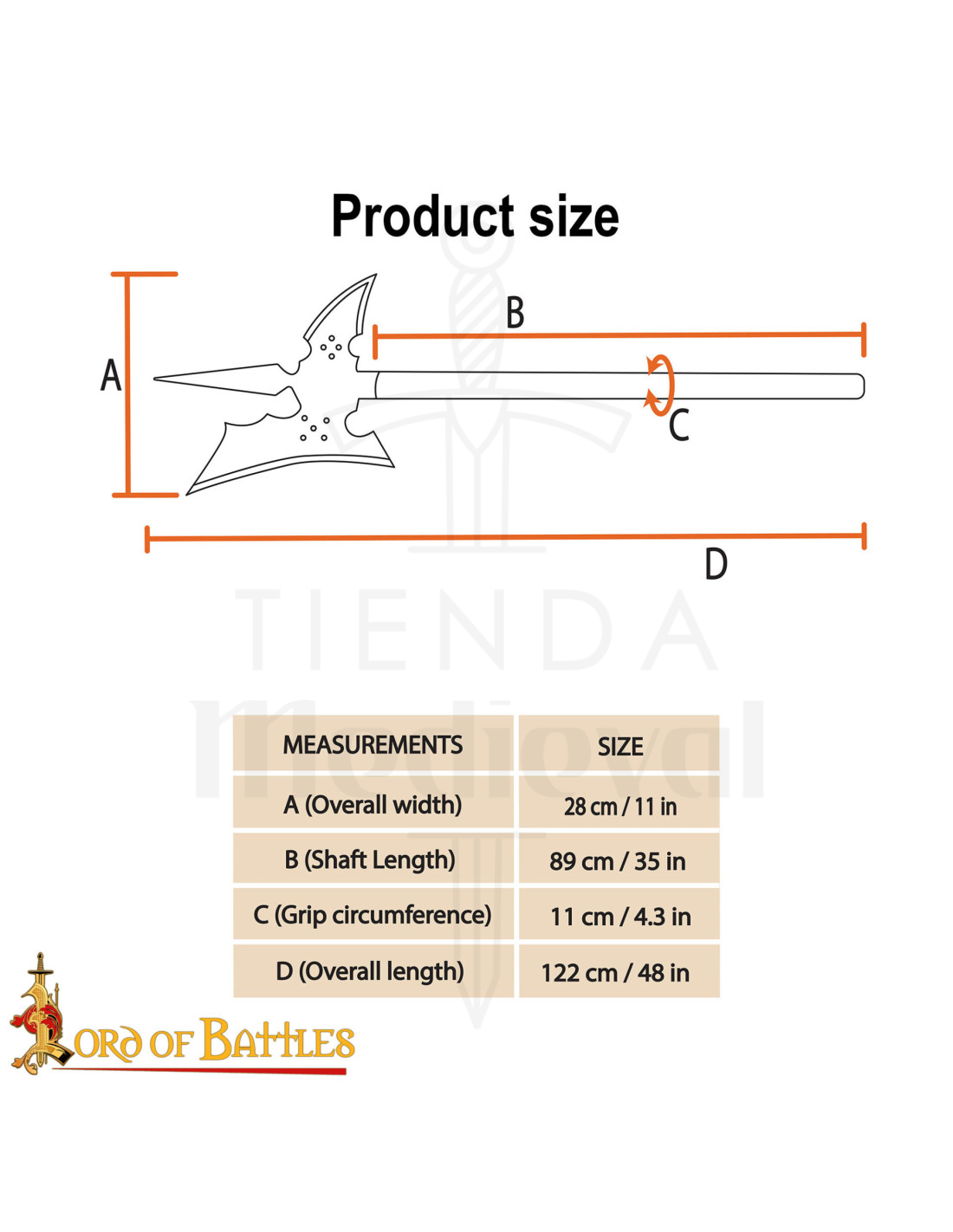 Interesse em contexto histórico? Este modelo reproduz a estética das alabardas que dominaram os campos europeus entre os séculos XIV e XVI, utilizadas por piqueros e guardas, o que acrescenta autenticidade a qualquer ambientação renascentista ou de museu.
