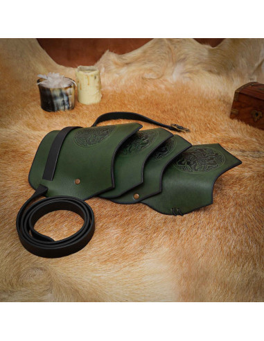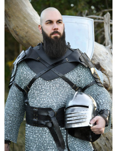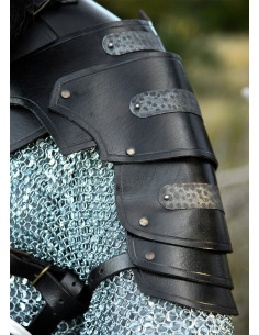 Ombreiras de cavaleiro medieval com tiras de couro