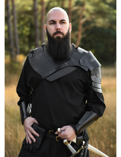 Ombreiras medievais de couro modelo Senua, cor preta