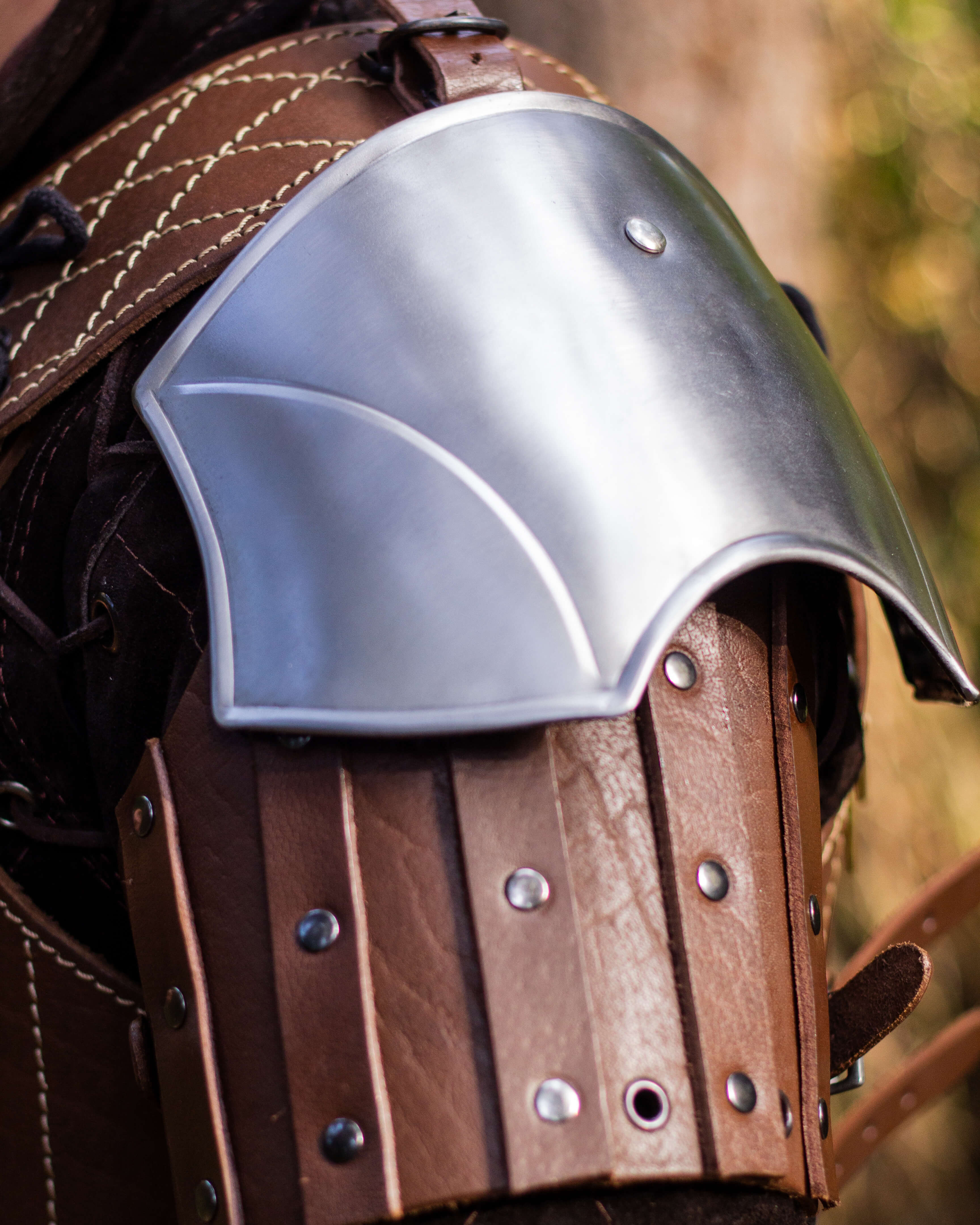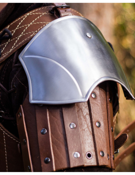 Ombreras medievais em aço modelo Strigo, acabamento polido