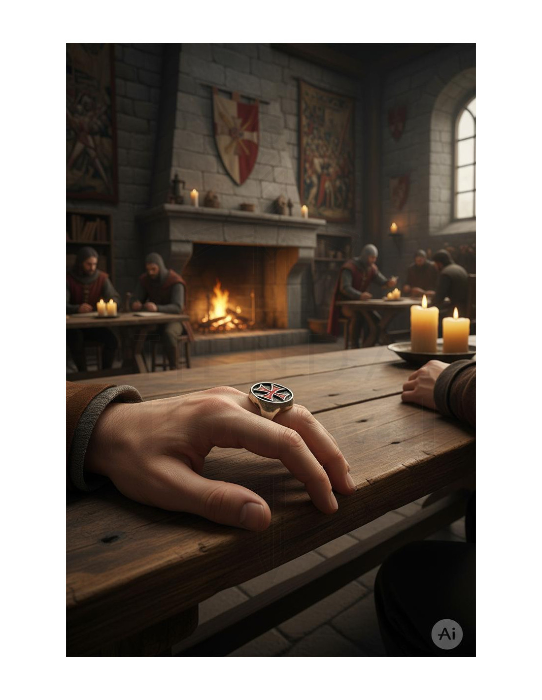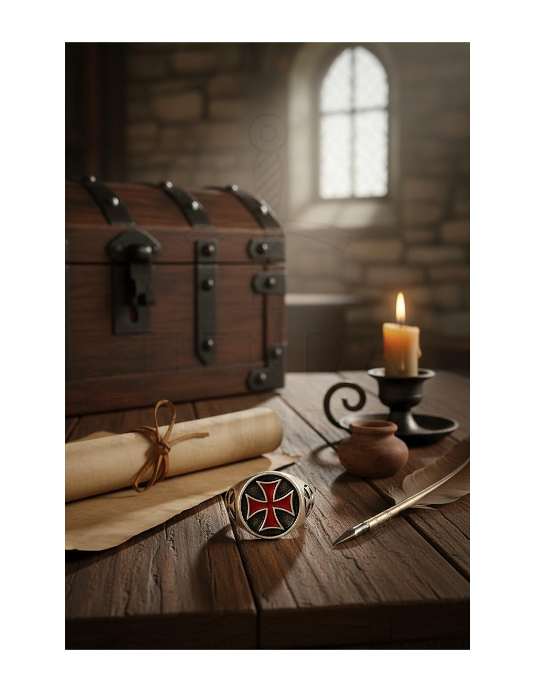A decoração esmaltada da Cruz dos Templários neste anel adiciona um toque de história e simbolismo. Os Cavaleiros Templários eram conhecidos por sua bravura e devoção, e este anel permite que você carregue o espírito deles com você.