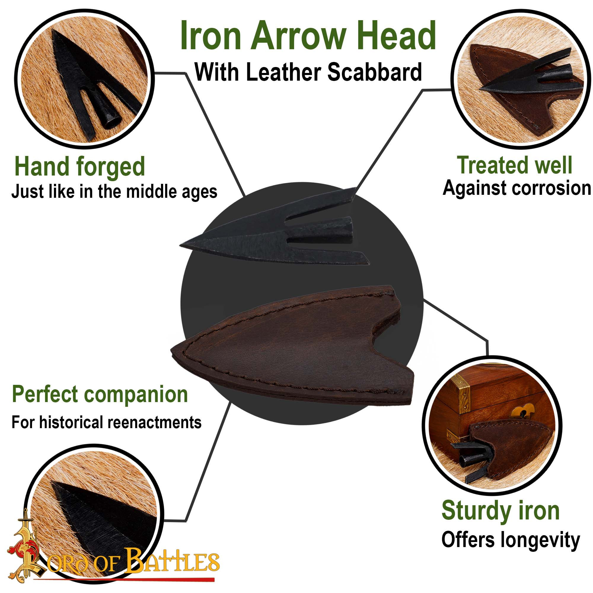Conjunto de 3 pontas de flecha em ferro forjado modelo Bodkin