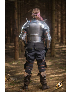 Além disso, este conjunto possui tiras de couro que permitem ajustá-lo com precisão e conforto, dando-lhe a liberdade de movimento necessária para se envolver em escaramuças de guerra sem restrições.