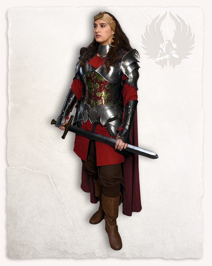 Com cada peça ajustada ao seu corpo, experimentará uma transformação. A força, a confiança e o espírito de luta se unem em um só instante. A armadura Lena, fabricada com aço carbono de alta resistência, oferece uma proteção que respira com você, sem abrir mão da mobilidade. Seus detalhes artesanais e sua adaptabilidade realçam sua identidade, permitindo sentir a liberdade de se mover com naturalidade e sem restrições. Não importa se seu objetivo é emular uma amazona, elfa ou sacerdotisa; essa armadura se torna sua segunda pele, realçando sua figura e projetando essa imagem de heroína invencível que leva dentro de si.