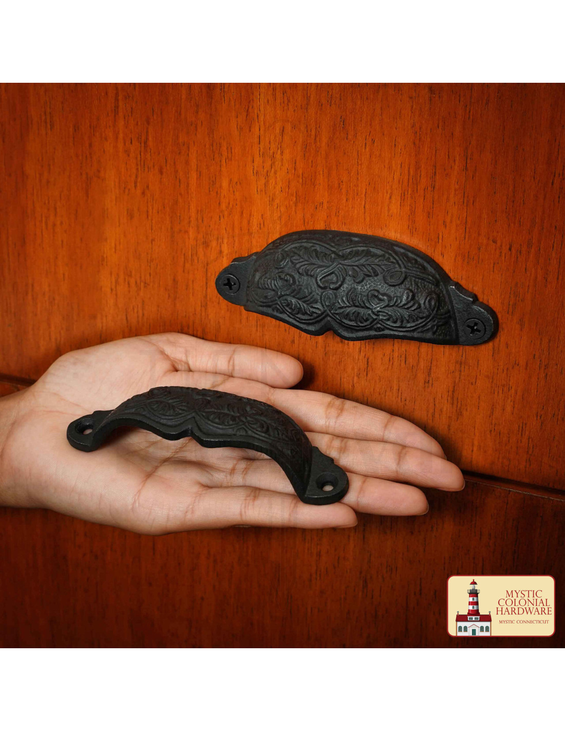 Este puxador transforma o prático em algo com personalidade: a taça semicircular oferece uma pegada confortável, a superfície em preto envelhecido traz presença e o motivo de folhas em relevo adiciona aquela sensação artesanal que transforma qualquer peça. Ao escolher este Puxador rústico de ferro fundido com folhas para gabinete, você estará optando por uma peça que harmoniza com ambientes góticos, cottage ou inspirados na natureza, sem esforço, e que eleva tanto restaurações como projetos novos.