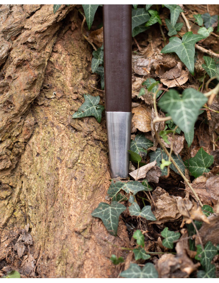 A Capa para espada em couro marrom, modelo Jorren combina uma presença sóbria com uma praticidade pensada para aqueles que vivem a recriação histórica e o combate cênico. O couro rígido mantém a forma ao longo do tempo, facilitando a inserção e retirada com agilidade, enquanto o acabamento liso traz uma estética clássica que não compete com o restante do traje. A ponta inferior reforçada com metal protege a base de impactos e arranhões, prolongando a vida útil do conjunto.
