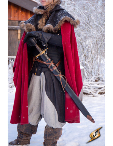Eldric destaca-se por unir presença estética com praticidade pensada para lâminas longas e estreitas, e por isso, se você deseja comprar a Capa marrom para espada revestida de madeira, modelo Eldric, obterá uma peça que valoriza a sua imagem, protege a sua arma e se integra facilmente à sua indumentária. É uma opção sólida para quem valoriza acabamento artesanal, ajuste confiável e um design que não passa despercebido.