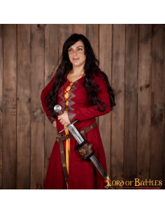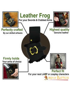 Este baldric para espadas e outras armas de couro é o complemento ideal para qualquer fã da história medieval. Com o seu estilo autêntico e a sua máxima funcionalidade, garante-lhe uma experiência única e autêntica nas suas recreações, eventos ou exposições. Não espere mais e adquira este acessório essencial.