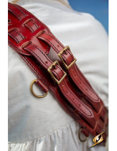 Alça de ombro Pirate Adventurer em couro vermelho baldrico