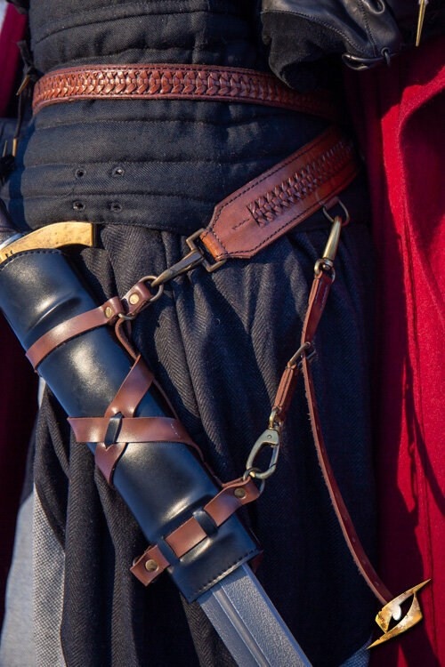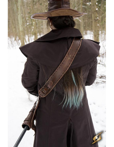 - Compatibilidade versátil: Com abertura de 7 cm por 3 cm, este baldric pode acomodar a maioria das espadas LARP graças à flexibilidade do couro sintético. Quer seja uma espada curta, uma espada longa ou uma espada larga, este baldric adapta-se às suas necessidades.