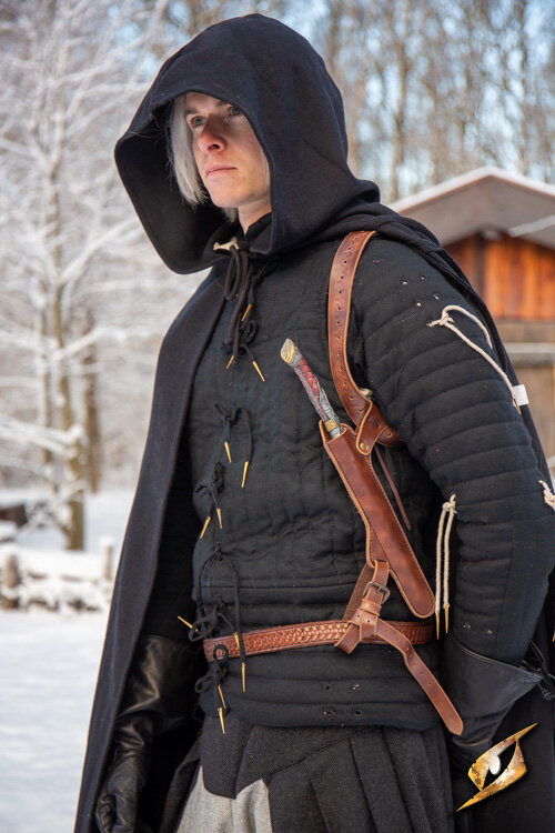 Fabricado em couro sintético de alta qualidade, este estojo alia durabilidade e elegância, garantindo que sua varinha, extensão de sua essência e veículo de seu poder emergente, permaneça protegida e sempre ao seu alcance. Seu design ajustável permite uma personalização completa, adaptando-se perfeitamente ao seu corpo para oferecer conforto sem sacrificar a acessibilidade. O sistema de alça para ajuste de altura e a alça secundária que se prende ao cinto garantem que o coldre e a varinha permaneçam estáveis e seguros, quer você prefira carregá-los abertamente ou de forma mais discreta.