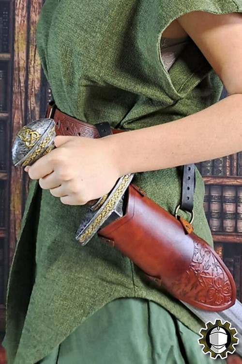Imagine usar este tahalí em sua cintura, sentindo a suavidade do couro e o conforto que ele oferece em cada movimento. Graças ao seu design engenhoso, ele se adapta perfeitamente a você, permitindo um uso sem esforço enquanto o mergulha na autenticidade do mundo medieval.