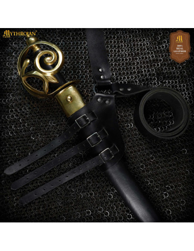 Além de sua estética elegante, este tahalí é extremamente prático. Permite um fácil acesso à sua espada, seja para praticar esgrima, cosplay ou simplesmente como parte de sua indumentária medieval. Sua textura e acabamento fornecem não apenas um toque de classe, mas também garantem uma longa vida útil, mesmo com uso intensivo.