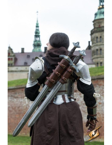 Imagine poder exibir um acessório que combine estilo, funcionalidade e durabilidade; isso é exatamente o que oferece este tahalí para espada. Elaborado com um couro marrom italiano de altíssima qualidade, este produto da Armorware não só é um deleite visual, mas também se tornará seu aliado no uso diário.