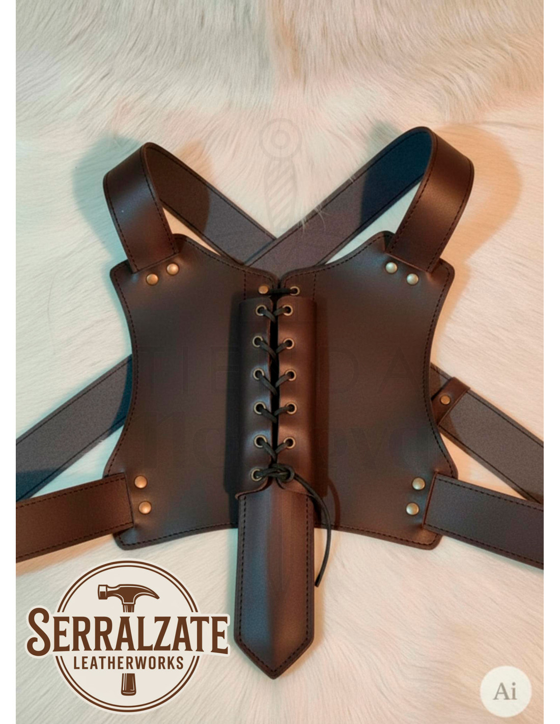 Feito à mão na Espanha por renomados artesãos de couro, cada peça oferece uma sensação de qualidade premium e uma resistência pensada para acompanhá-lo por muito tempo, além de envelhecer com caráter. O acabamento marrom traz discrição e versatilidade, perfeito para cosplayers, treinos leves ou colecionadores que buscam uma peça com presença.