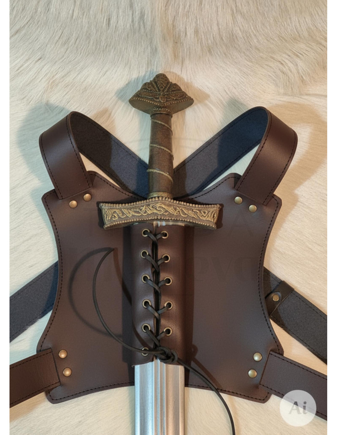 Graças aos seus cintos ajustáveis ao peito e aos ombros, você experimentará um ajuste personalizado que permanece firme enquanto caminha ou treina, facilitando um desembainhar rápido e sem tropeços. O sistema autoajustável se adapta a diferentes tamanhos e posturas, tornando o uso da espada confortável por horas.