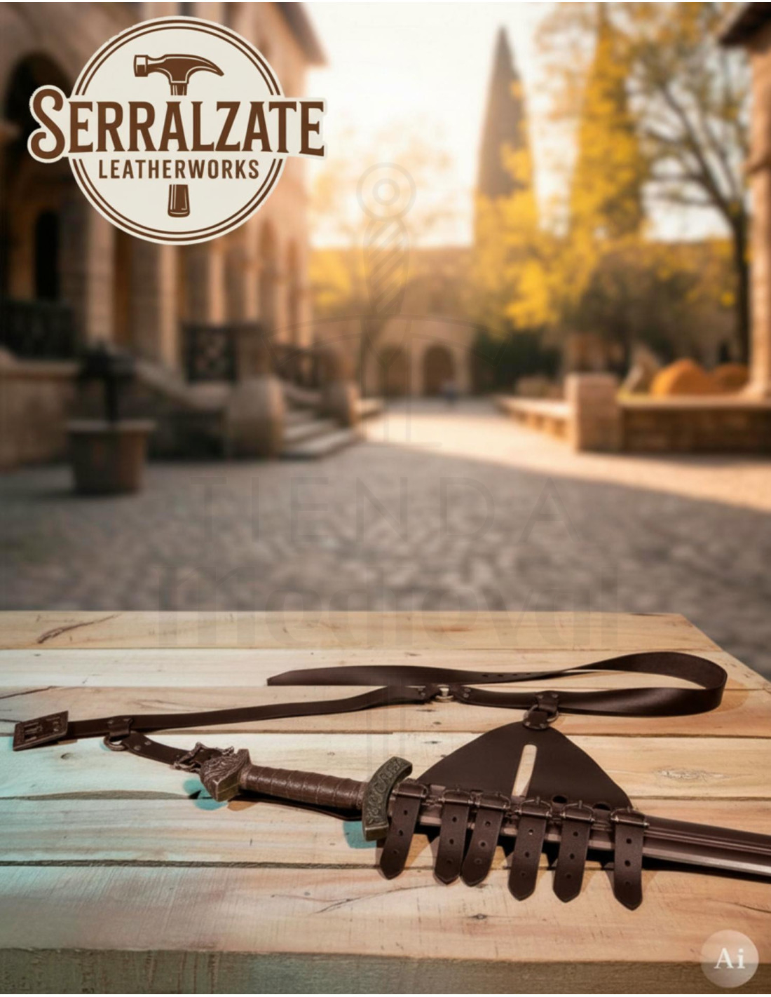 Feito à mão na Espanha por renomados artesãos do couro, este tahalí renascentista oferece um acabamento marrom elegante e uma pele de vaca com corpo, capaz de manter sua forma e resistir ao uso contínuo sem abrir mão do conforto.