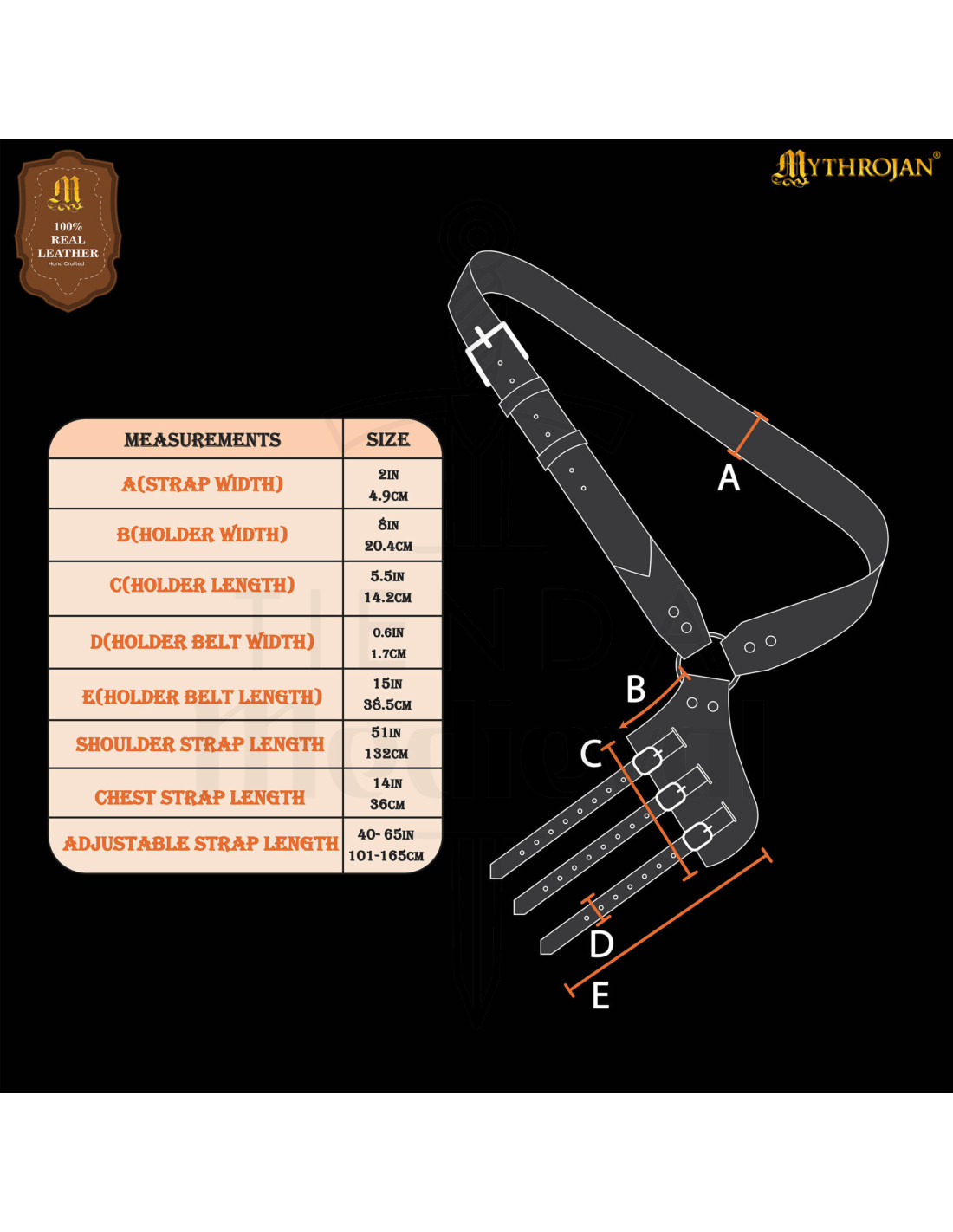 Pensado especificamente para a mão direita, este tahalí mantém uma silhueta tradicional, ideal para quem busca autenticidade e funcionalidade ao mesmo tempo. Sua construção permite acomodar de forma segura espadas longas, espadas de bracelete e réplicas de LARP, adaptando-se a diferentes comprimentos sem complexidade.