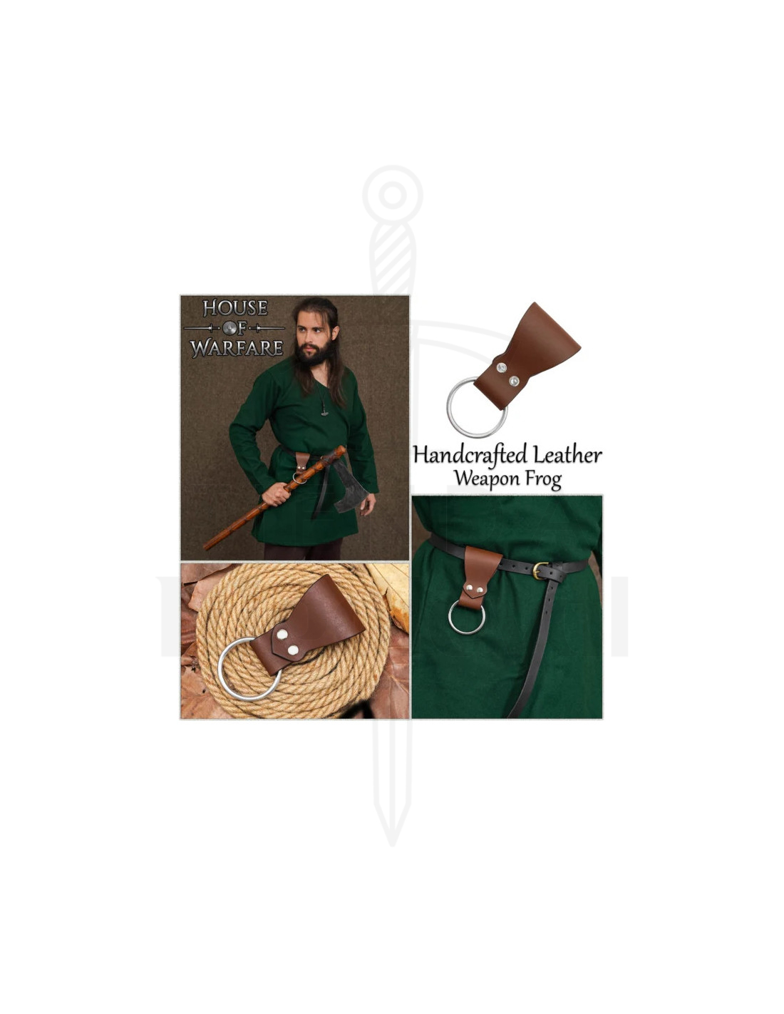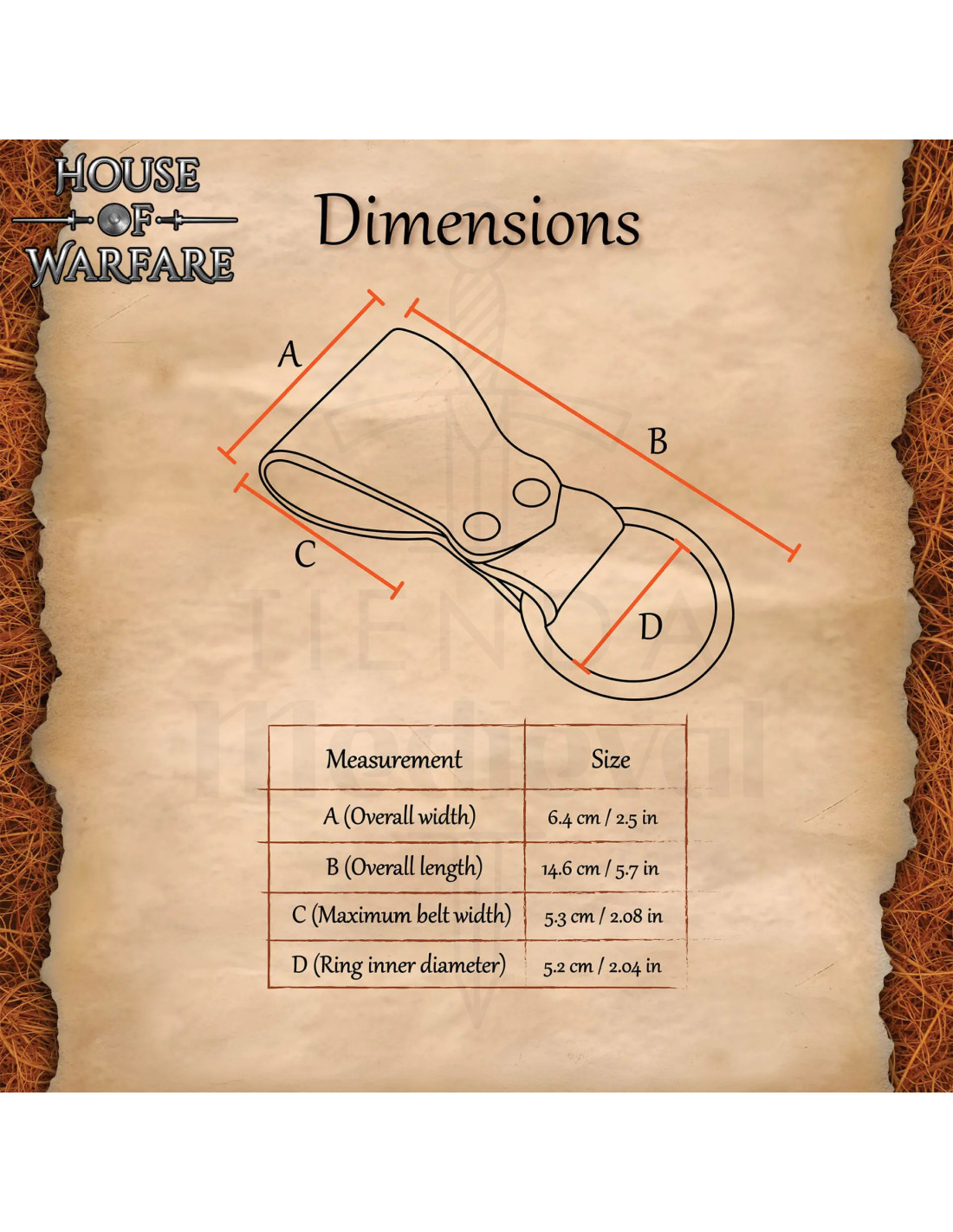 Esqueça os ajustes complicados, o design permite levar machados, martelos ou outras ferramentas de haste de forma segura, com silêncio e estabilidade ao caminhar. A argola fixa segura a arma sem balanços incômodos, enquanto a alça ajustável se adapta aos cintos largos habituais, integrando-se com trajes vikings, medievais ou de LARP sem desentonar.