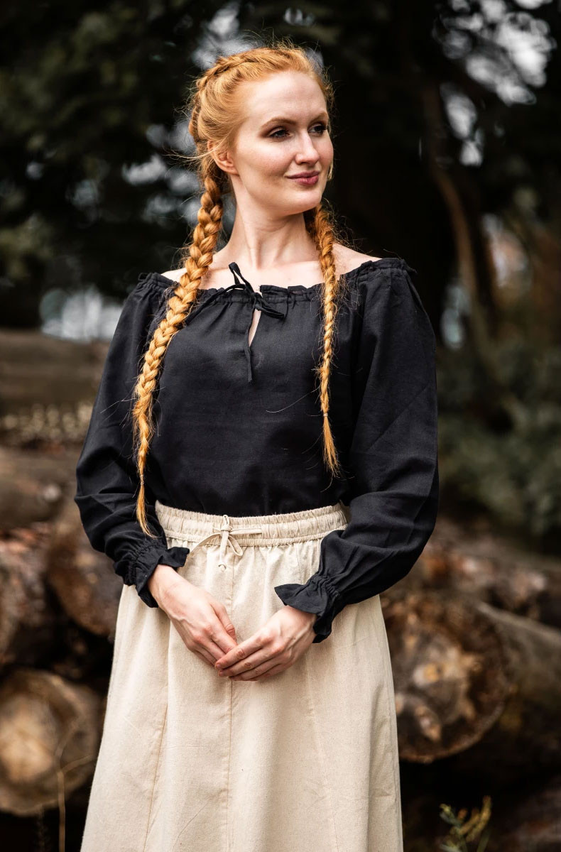 Sentes que o passar do tempo te deixou numa rotina monótona, desejas uma identidade que reflita força, elegância e um toque de mistério. Queres que cada dia te dê a confiança de parecer autêntica, com um estilo que fala por ti e te conecta com uma história ancestral. A uniformidade já não tem espaço na tua vida; queres destacar-te, sentir-te poderosa e genuína em cada faceta. A chave para essa mudança está em encontrar a peça que não só veste o teu corpo, mas que também transforma a tua atitude. A Blusa medieval de manga comprida torna-se no teu veículo para esse novo tu, um símbolo do teu carácter vibrante e do teu apetite pelo que é verdadeiro.