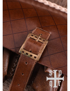 Fabricada pela SPQR, reconhecida pela sua dedicação à criação de produtos históricos de alta qualidade, esta Bolsa Medieval de Couro reflete o artesanato e o cuidado em cada detalhe. Disponível em diversas cores, esta bolsa permite ao usuário personalizar seu estilo e se destacar em qualquer ocasião com um autêntico toque medieval.