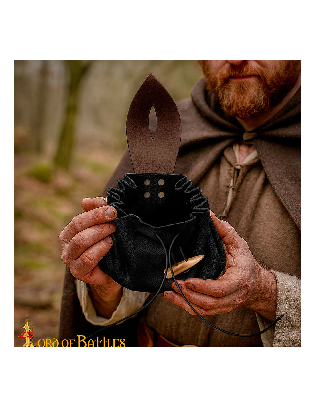 A bolsa de couro para o modelo de cinto A marca Aventureiro do Senhor das Batalhas é uma peça única de artesanato. É feito à mão de couro de camurça genuíno, dando-lhe extrema resistência e durabilidade inigualável. Essa bolsa é ideal para os aventureiros que precisam contar com um produto confiável e resistente.