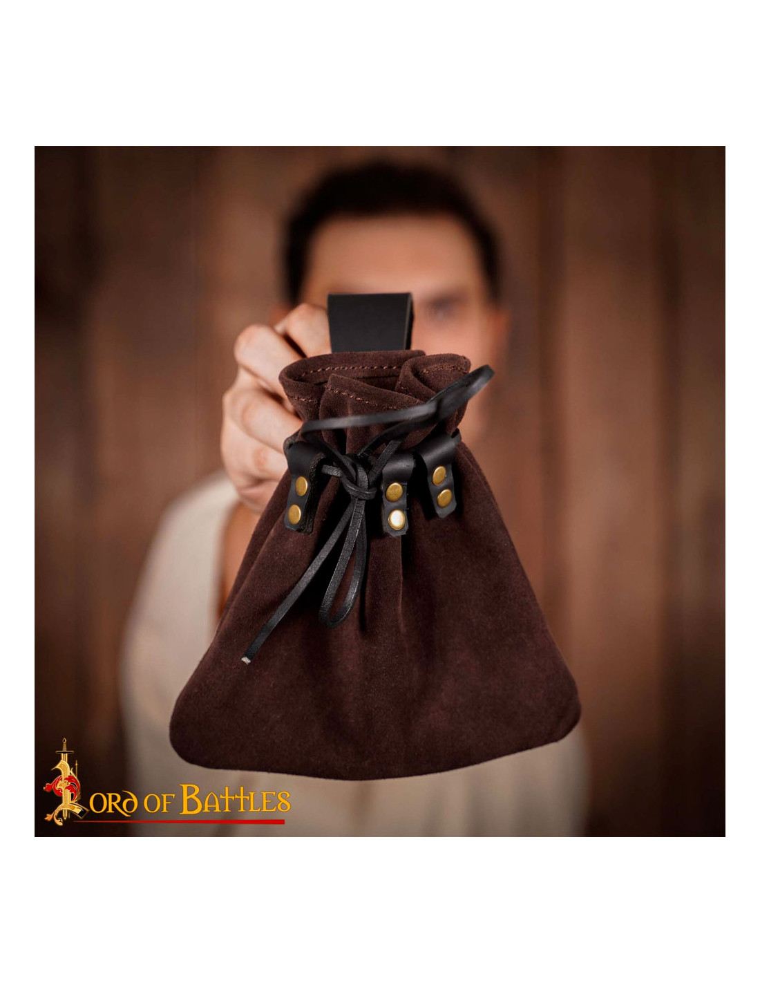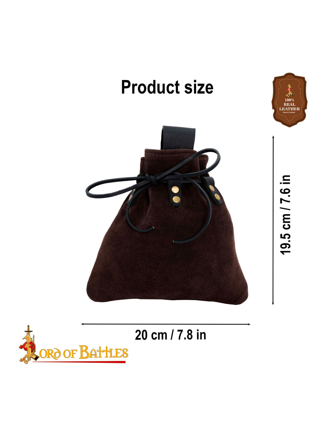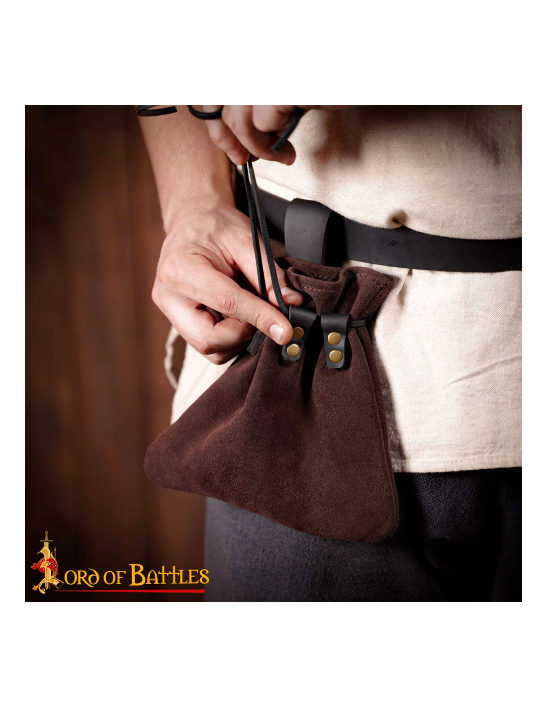 A pochete medieval com fecho de cordão da prestigiosa marca Lord of Battles é uma obra-prima artesanal feita à mão com couro de camurça genuíno. Seu design cuidadosamente elaborado combina flexibilidade e força, tornando-o um companheiro durável que superará qualquer outro artesanato em couro.