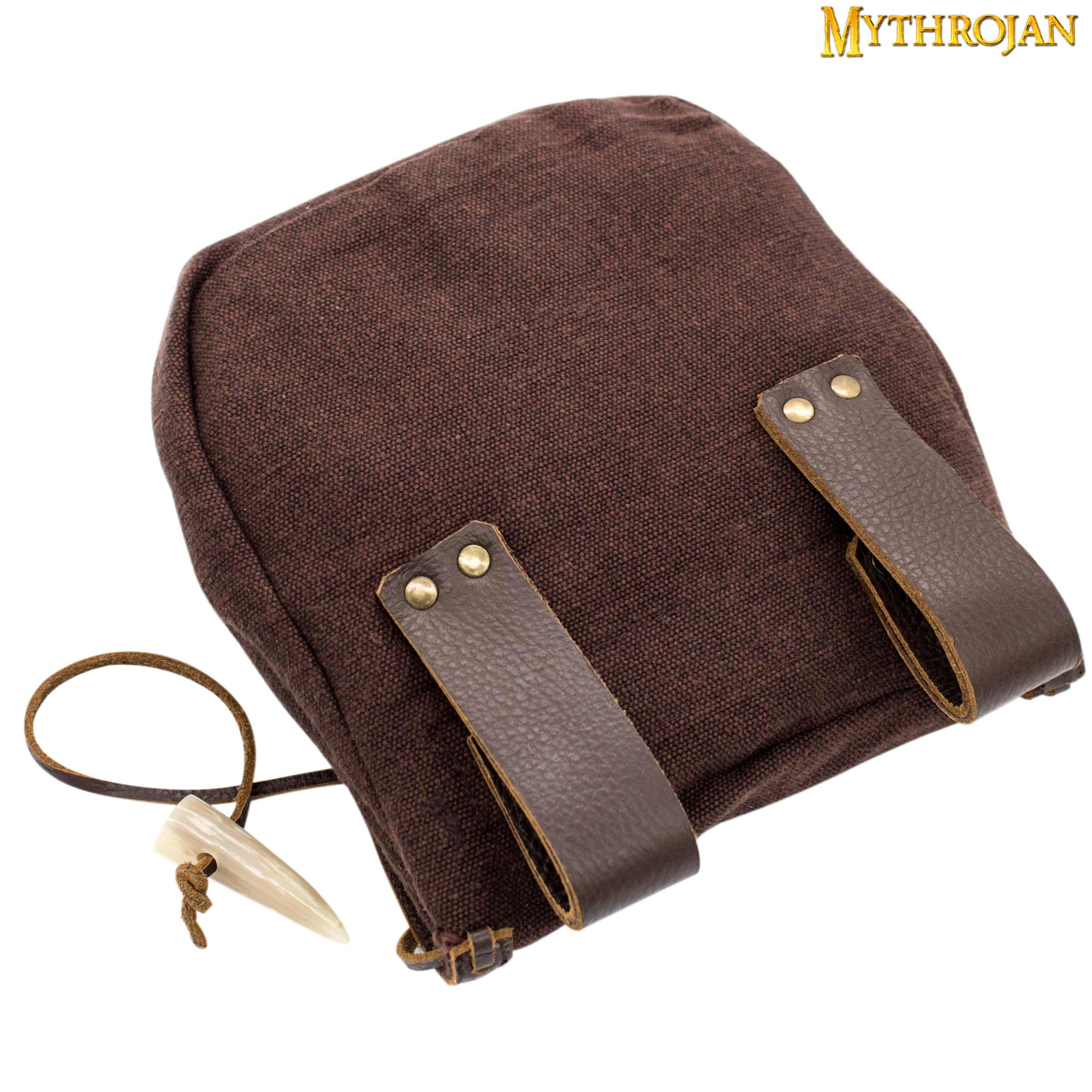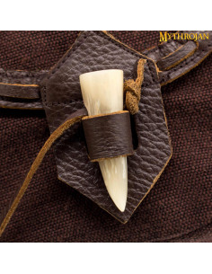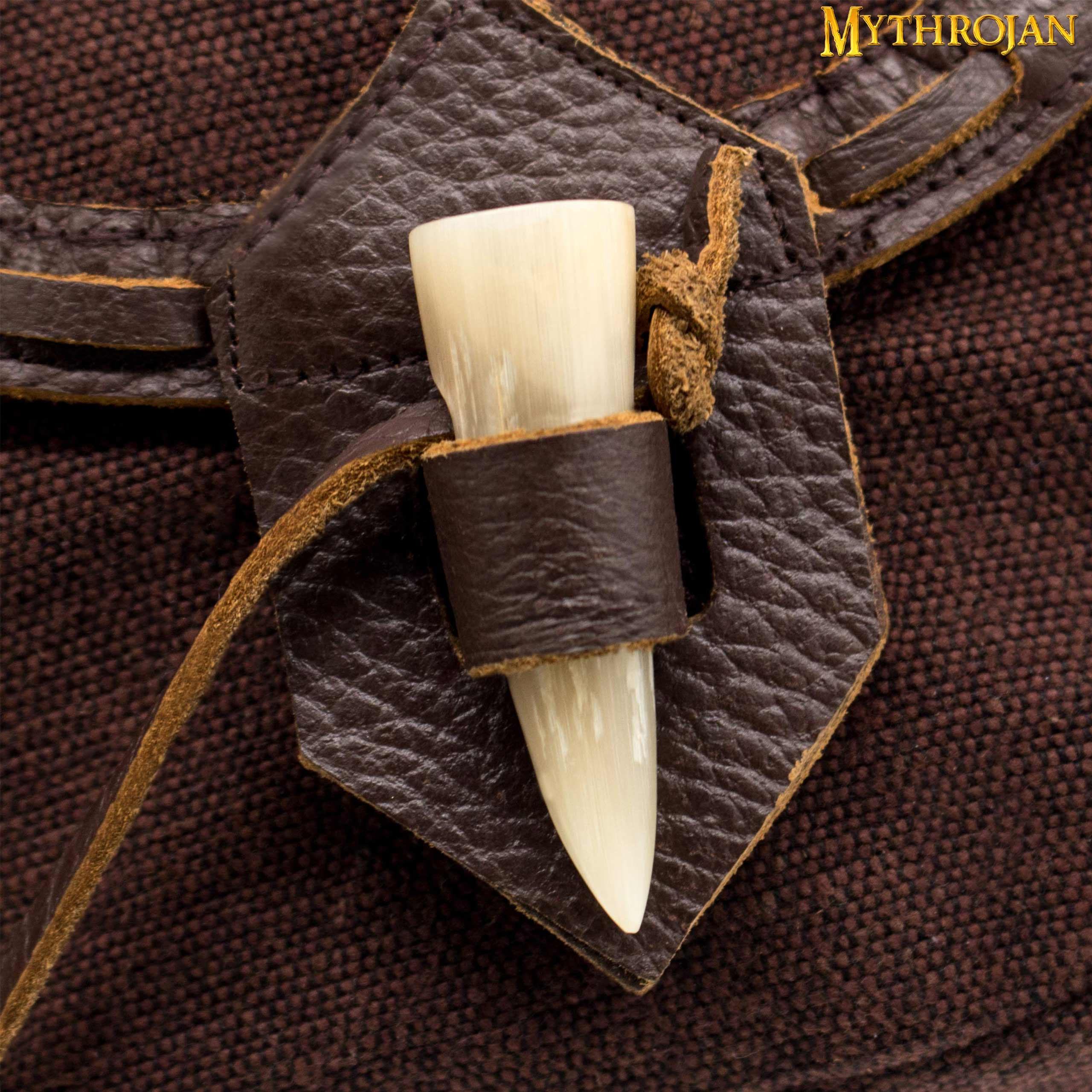 Descubra a essência autêntica da era medieval com nossa bolsa medieval em lona e couro com fecho de chifre em uma elegante cor marrom. Feito à mão com cuidado e precisão, esta bolsa é o complemento perfeito para qualquer amante da história.