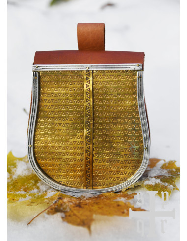 Bolsa medieval em pele castanha com frente em latão (19,5x14 cm.)
