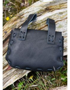 Bolsa medieval dupla de couro modelo Hrothgar, cor preta
