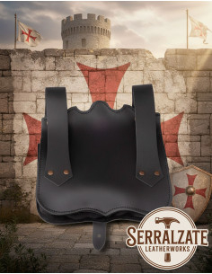 A bolsa medieval de couro modelo Cruzado na cor preta é uma peça excepcional que se destaca pelo seu design curvado elegante e pela cruz templária costurada na parte frontal, conferindo-lhe um charme histórico inconfundível. É ideal para completar trajes com inspiração histórica, seja em feiras medievais, recriações históricas ou para qualquer pessoa que deseje adicionar um toque autêntico ao seu vestuário. A cruz templária, símbolo associado aos famosos cavaleiros templários da Idade Média, traz um ar de nobreza e mistério que evoca histórias de cruzadas e antigas ordens de cavalaria.