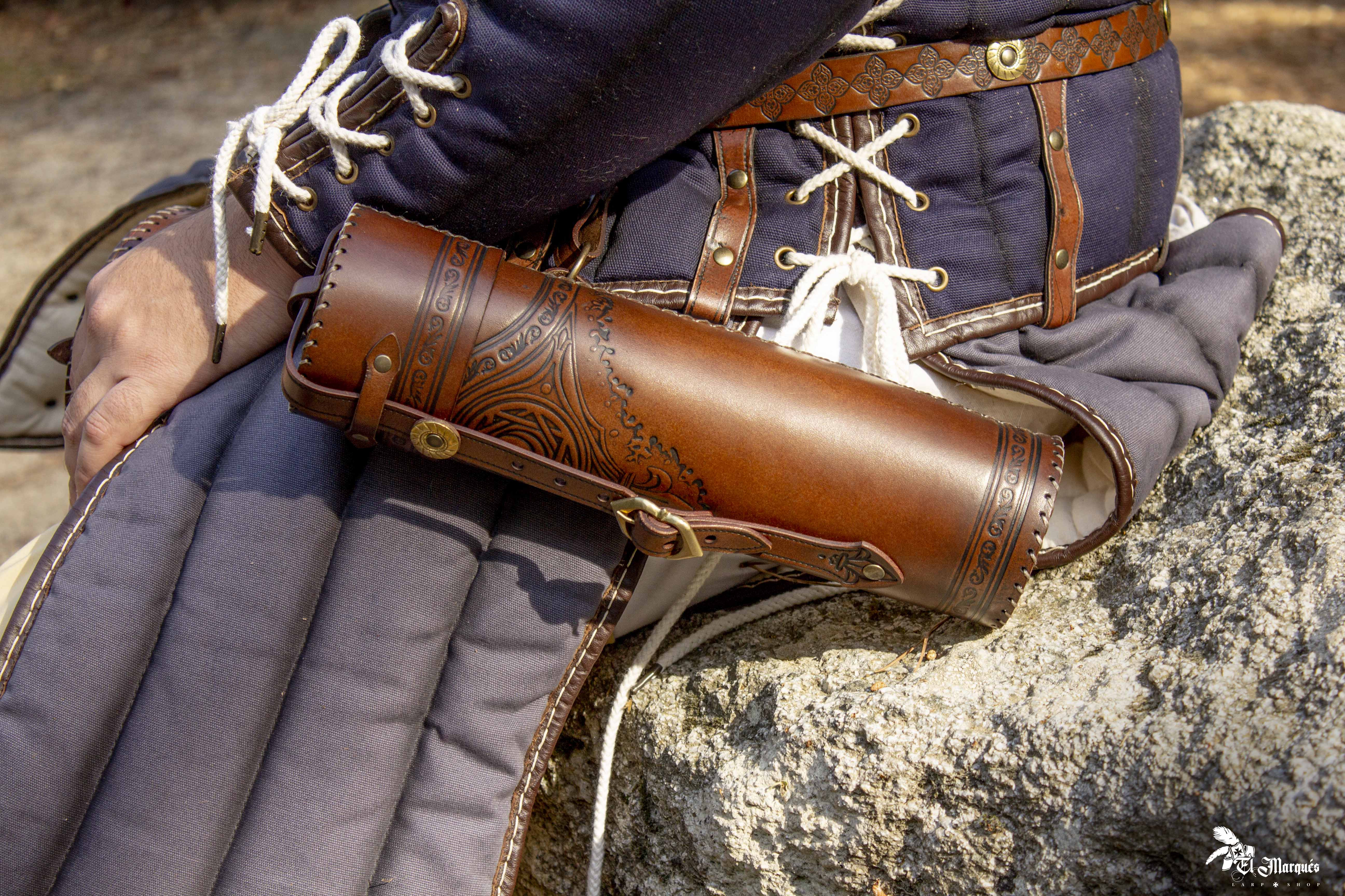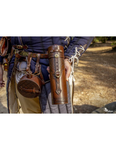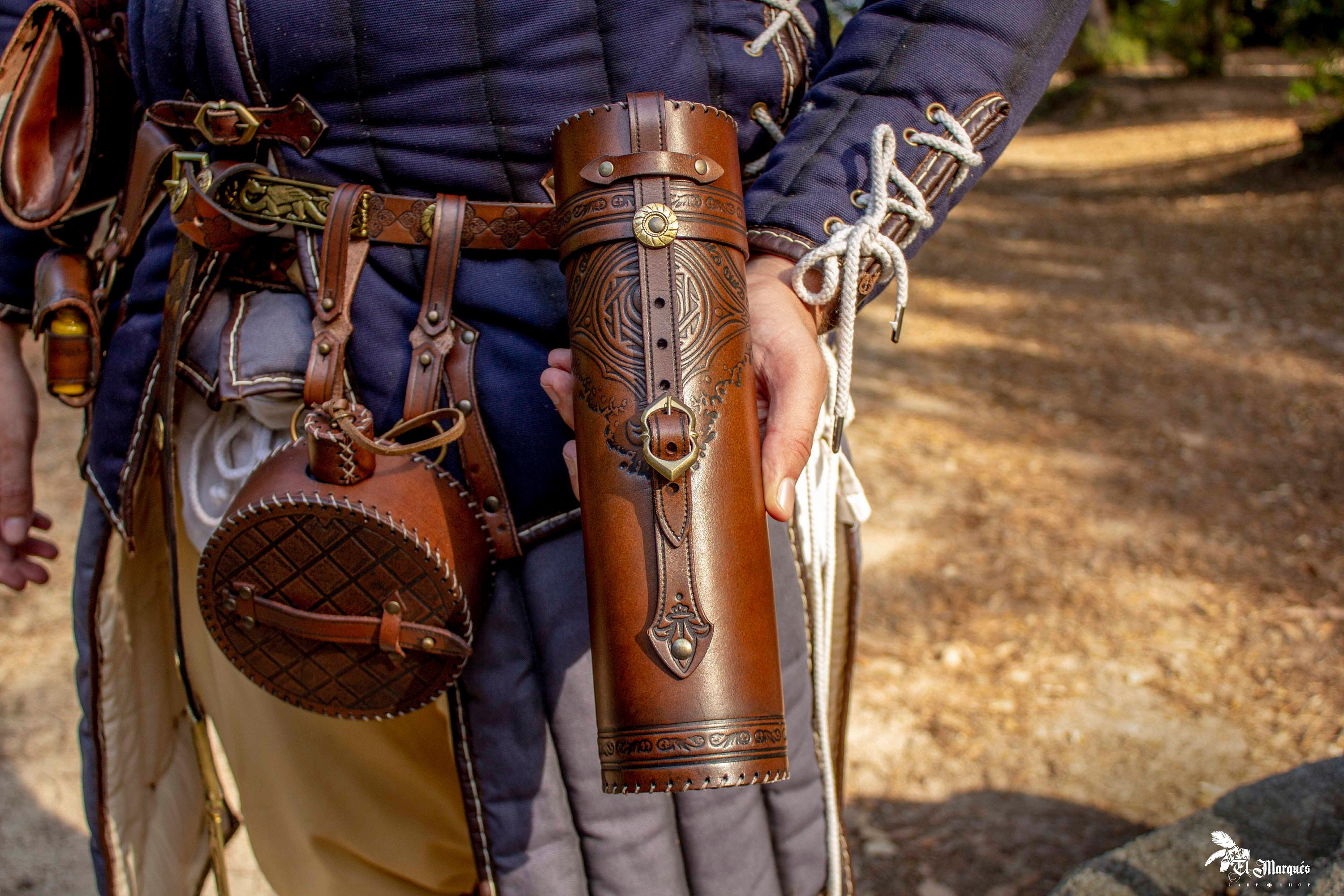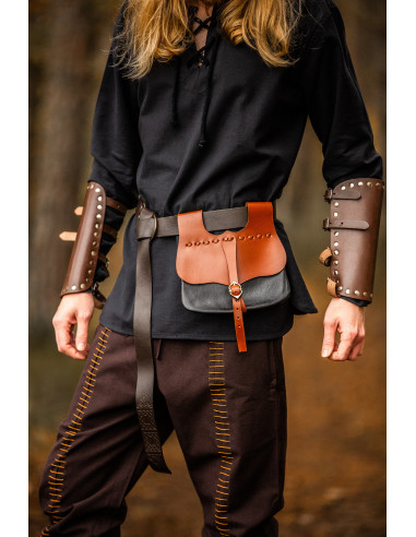 Bolsa medieval de couro com fecho de osso, cor vermelha