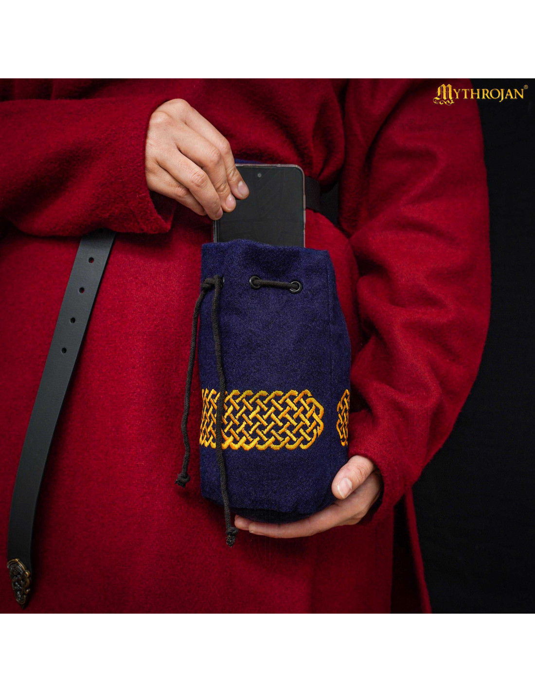 Descubra uma peça que combina perfeitamente história e funcionalidade no seu dia a dia, com um toque artesanal que realça qualquer traje medieval ou estilo rústico. Esta bolsa de lã azul, cuidadosamente bordada à mão, é muito mais do que um acessório; é uma declaração de qualidade e tradição.