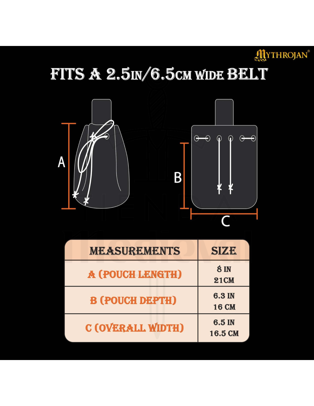 O acabamento em azul escuro, com um bordado amarelo entrelaçado na parte inferior, acrescenta um toque estético que enriquece seu caráter rústico e autêntico. A longa tira superior permite pendurá-la confortavelmente, alcançando um estilo prático e decorativo. Além disso, seu design simples e resistente a torna um presente perfeito para amantes de recreação histórica, fantasia ou quem aprecia artigos artesanais com história própria.