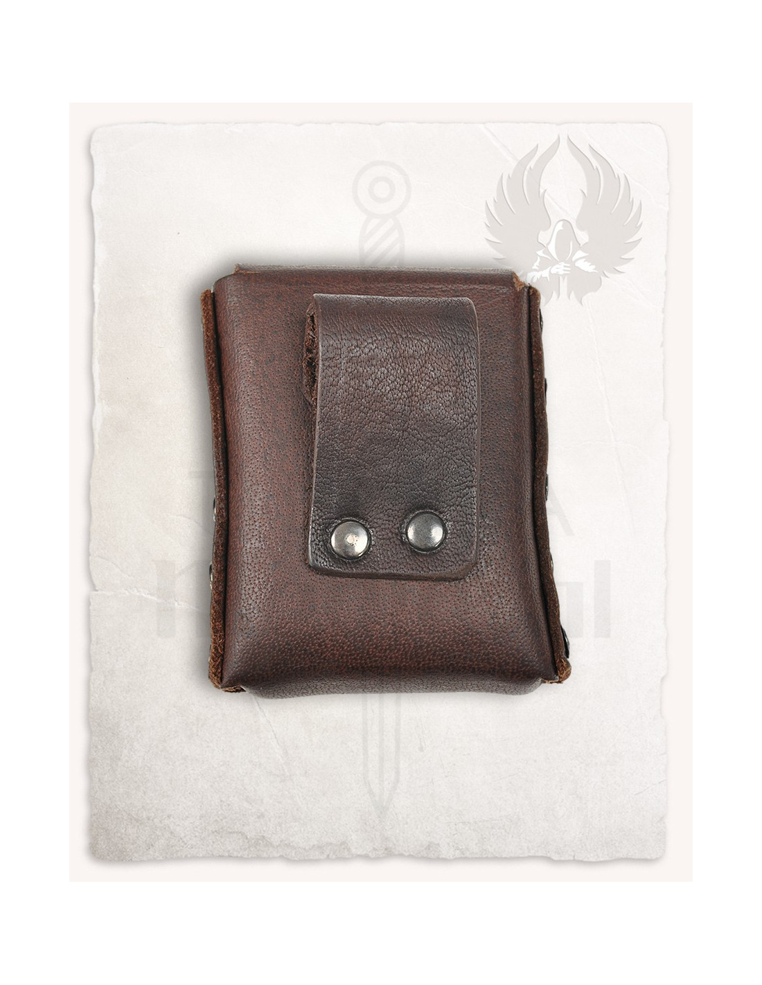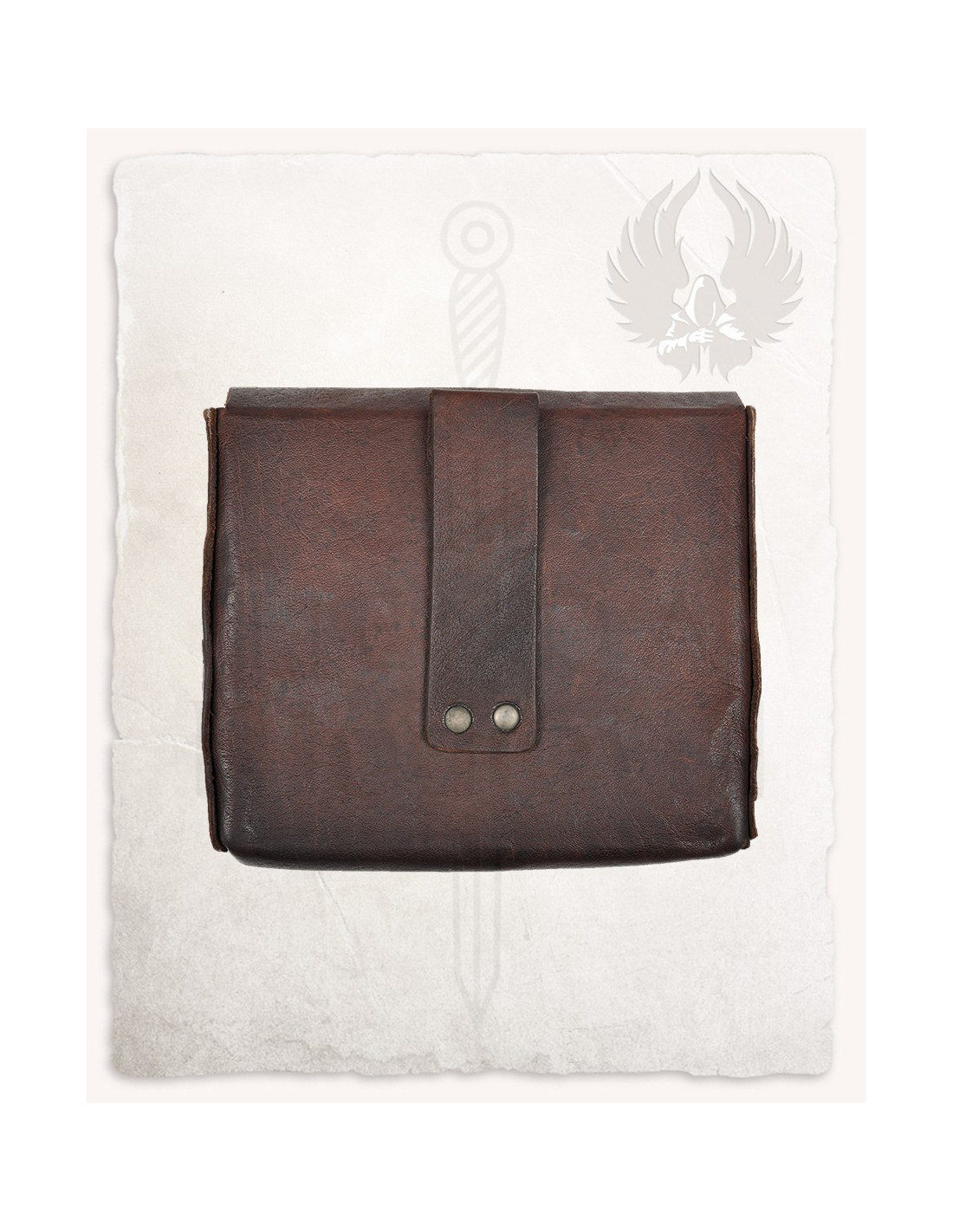 Fabricada em couro marrom com acabamento texturizado, esta bolsa oferece resistência e uma estética clássica que combina com qualquer estilo medieval ou de fantasia. Sua forma retangular e suas bordas suaves destacam sua simplicidade, permitindo personalizá-la de acordo com seu personagem ou preferência, sem perder seu caráter funcional. Graças à sua construção simples e durável com aço niquelado em seus detalhes, você pode confiar na sua durabilidade e facilidade de uso em suas aventuras ou eventos temáticos.