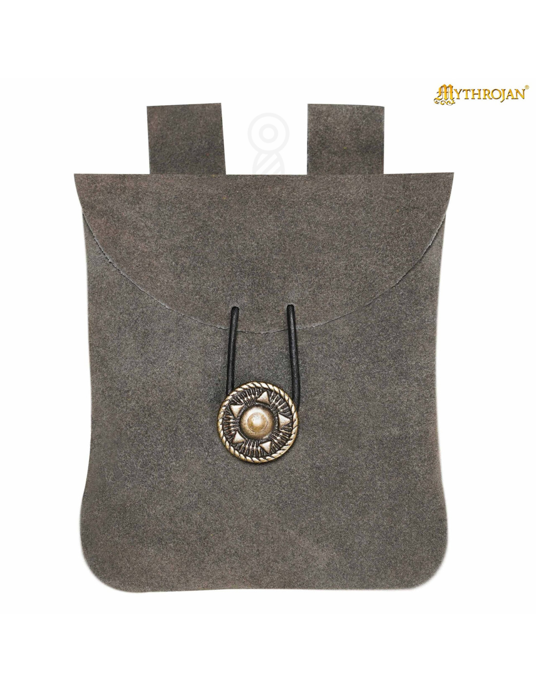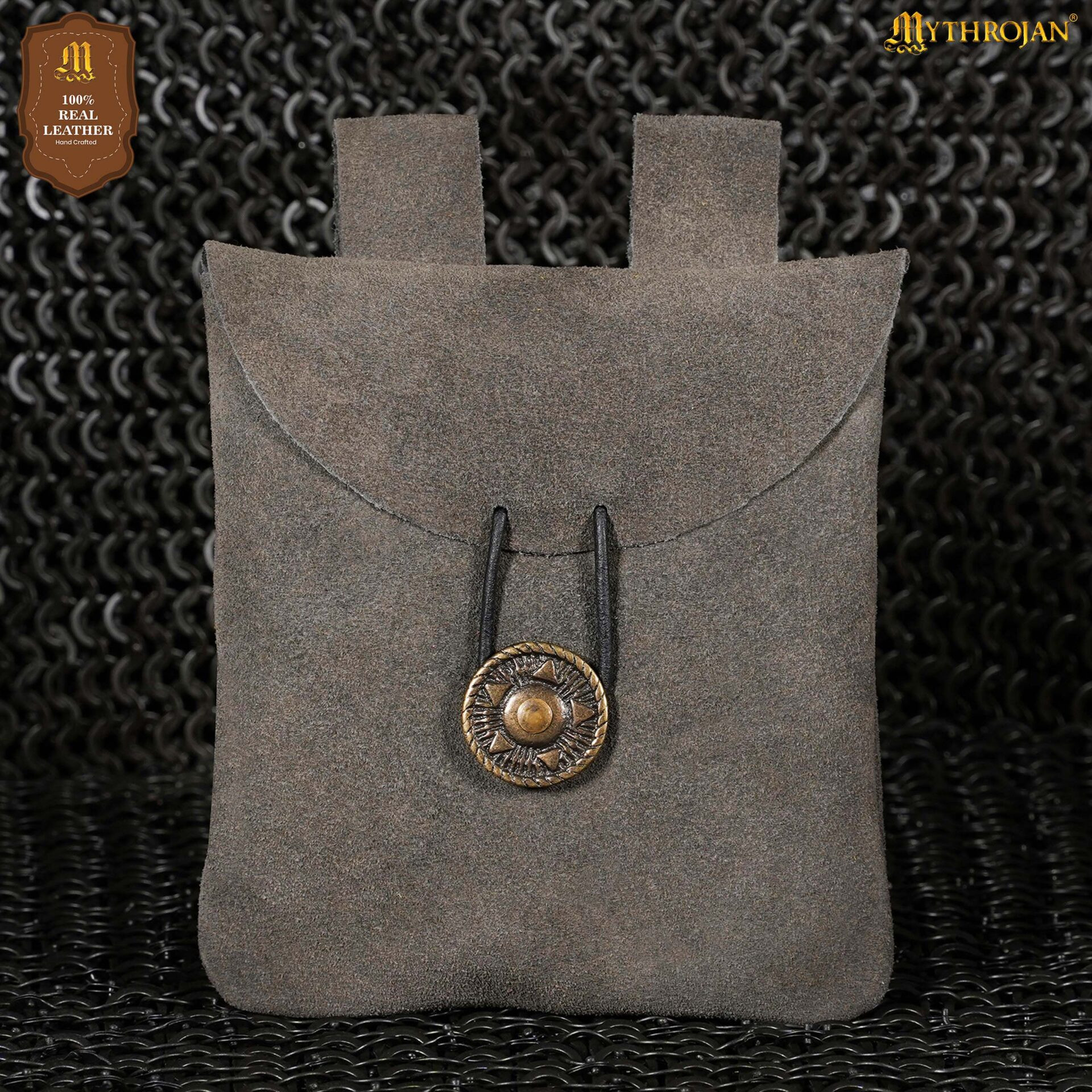 A fecho com botão metálico decorativo e o laço de couro não apenas completam o estilo antigo, mas também mantêm seus pertences protegidos de forma confiável, acrescentando um detalhe visível que reforça a estética medieval e artesanal.