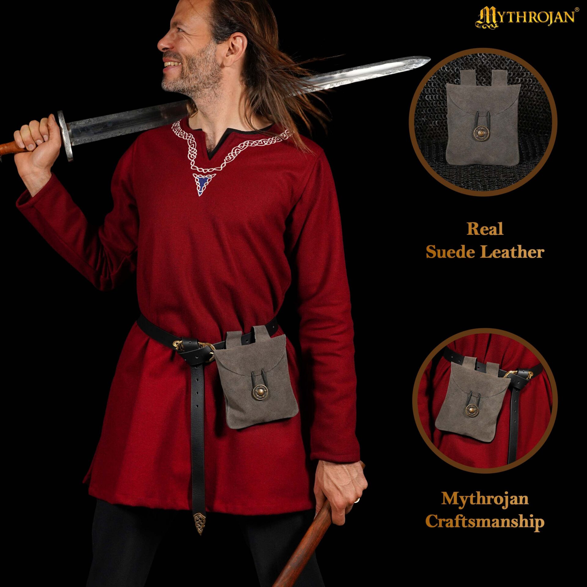 Bolsa pochete medieval de couro de camurça, cor cinza