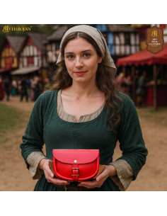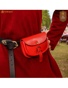 Se você procura comprar Bolsa medieval simples de couro, cor vermelha, para seu próximo evento ou para complementar uma fantasia viking ou renascentista, esta peça se integra facilmente com estilo.