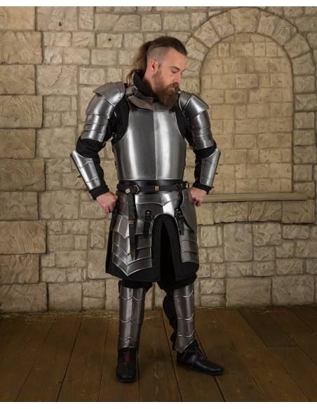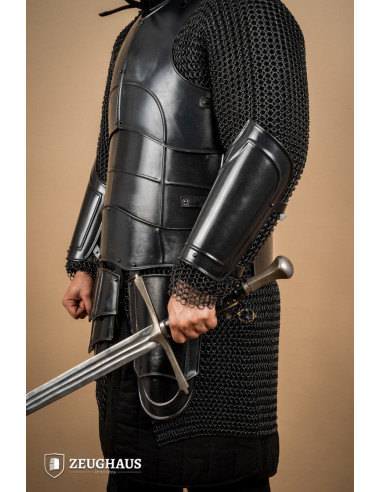 Braços medievais em aço modelo Landsknecht, acabamento escurecido