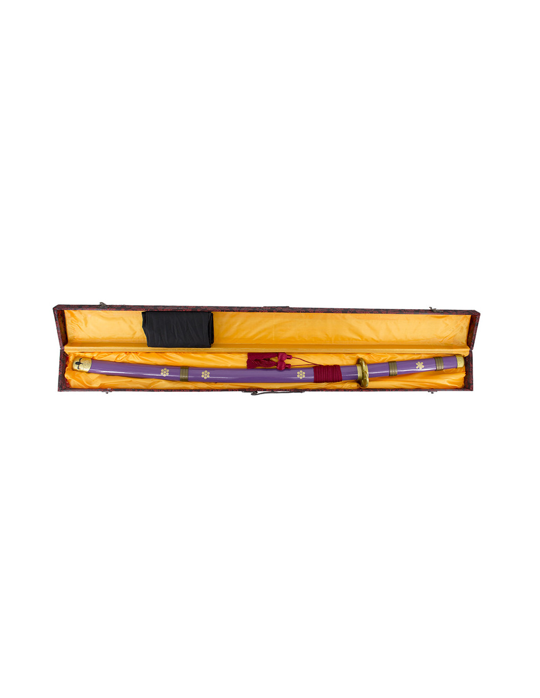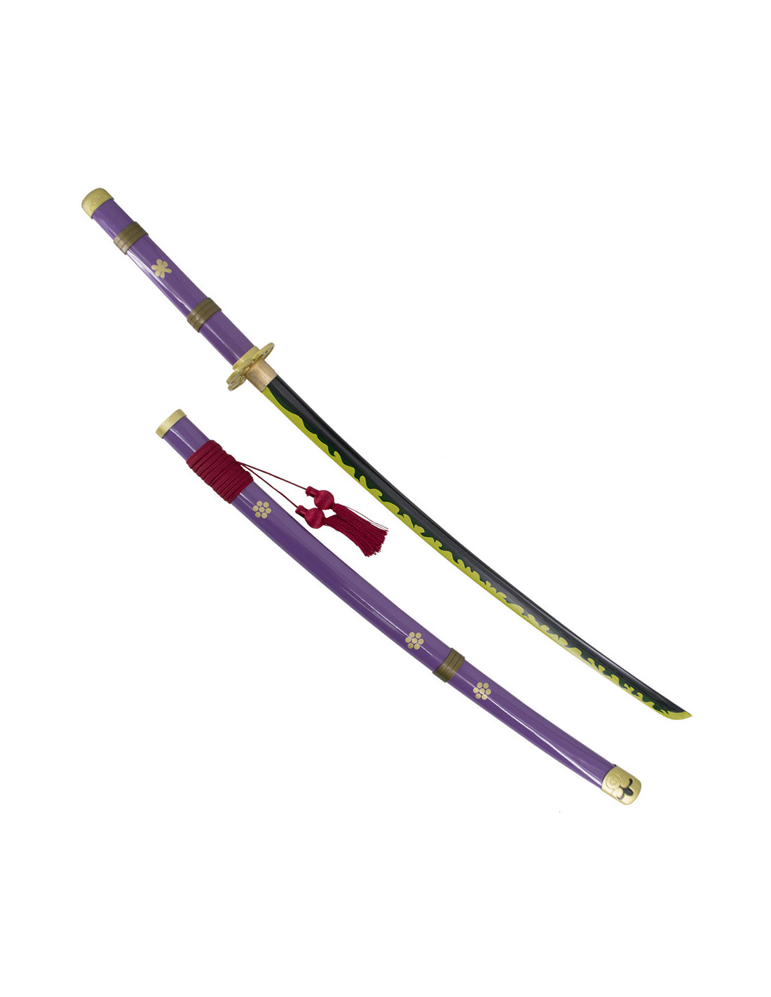 A tsuba em forma de trevo e a bainha escura adicionam elegância à espada. Além disso, a tsuka passou a ser de cor roxa a partir do capítulo 972 e do volume 96, tornando-se uma réplica fiel à história e permitindo que você se sinta parte da aventura de One Piece.