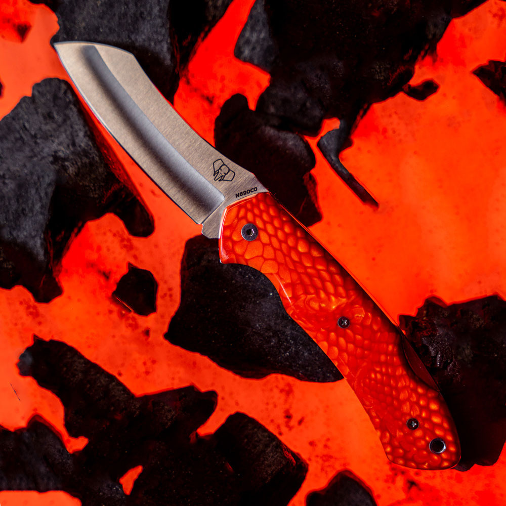 Sua lâmina acetinada, com um acabamento polido que destaca sua beleza, não é apenas um deleite para os olhos, mas também garante um desempenho superior. Fabricada com aço Böhler N690CO, esta faca oferece uma dureza impressionante que assegura uma durabilidade excepcional, permitindo que você enfrente qualquer desafio com confiança.