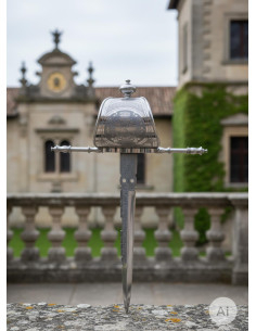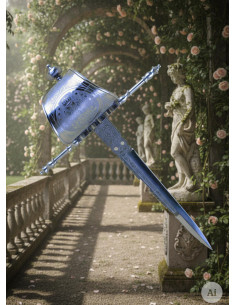 Fabricada em Toledo, Espanha, pelo reconhecido artesão J.L.Rubio, esta daga combina tradição e precisão moderna. Sua lâmina de 36,5 cms em aço gravado não só é resistente, mas também projeta uma aura de poder e resistência. A bainha de couro, cuidadosamente desenhada, protege a tua peça e mantém o teu controlo em todo momento. O seu tamanho e peso acompanham a tua destreza, facilitando um manuseio eficaz sem perder estilo. Manter-na em condições ideais é simples: locais secos, lubrificação periódica, e desfrutarás de uma peça que demonstra que preparação e resiliência fazem parte do teu ADN.