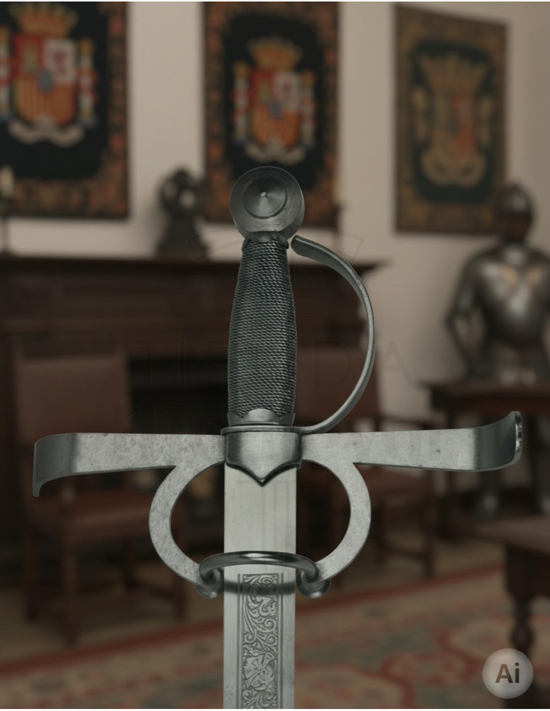 A espada Francisco de Pizarro é uma homenagem a este grande conquistador e permite que você tenha um pedaço da história em suas mãos. Sua lâmina de aço envelhecido e sua fabricação em Toledo, na Espanha, garantem sua qualidade e autenticidade. Não perca a oportunidade de ter esta espada única em sua coleção.