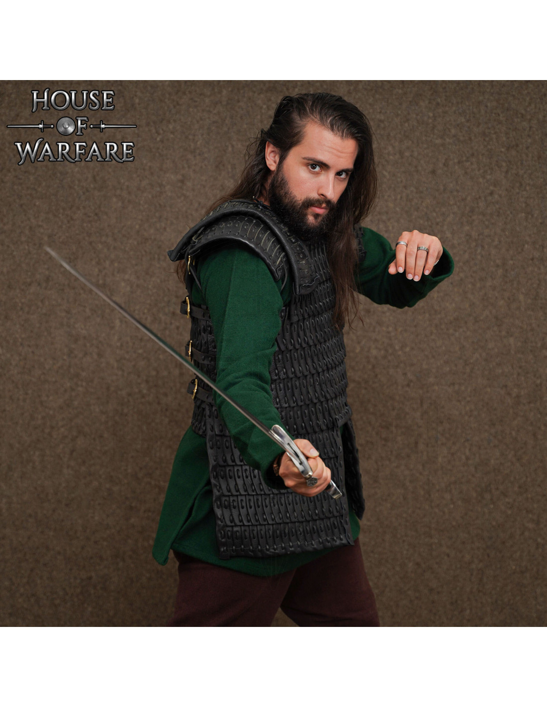 Esta interpretação lamelar, inspirada nas proteções usadas por vikings, russos e cavaleiros das estepes, transforma placas sobrepostas em uma barreira flexível, projetada para que você se mova, lute ou atue sem restrições. O couro genuíno oferece resistência e uma flexibilidade natural, permitindo que você perceba como acompanha cada giro e cada passo, em vez de te limitar.