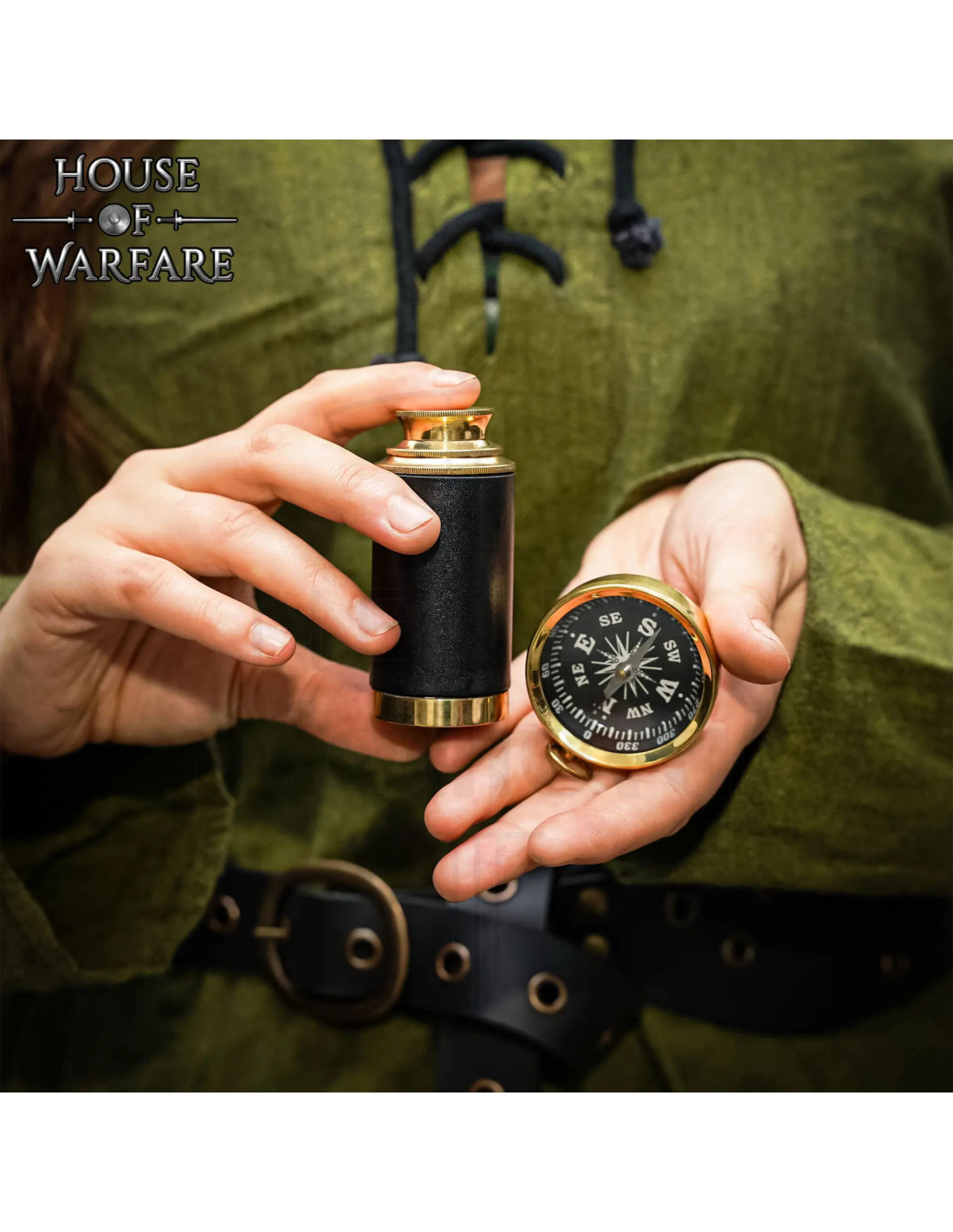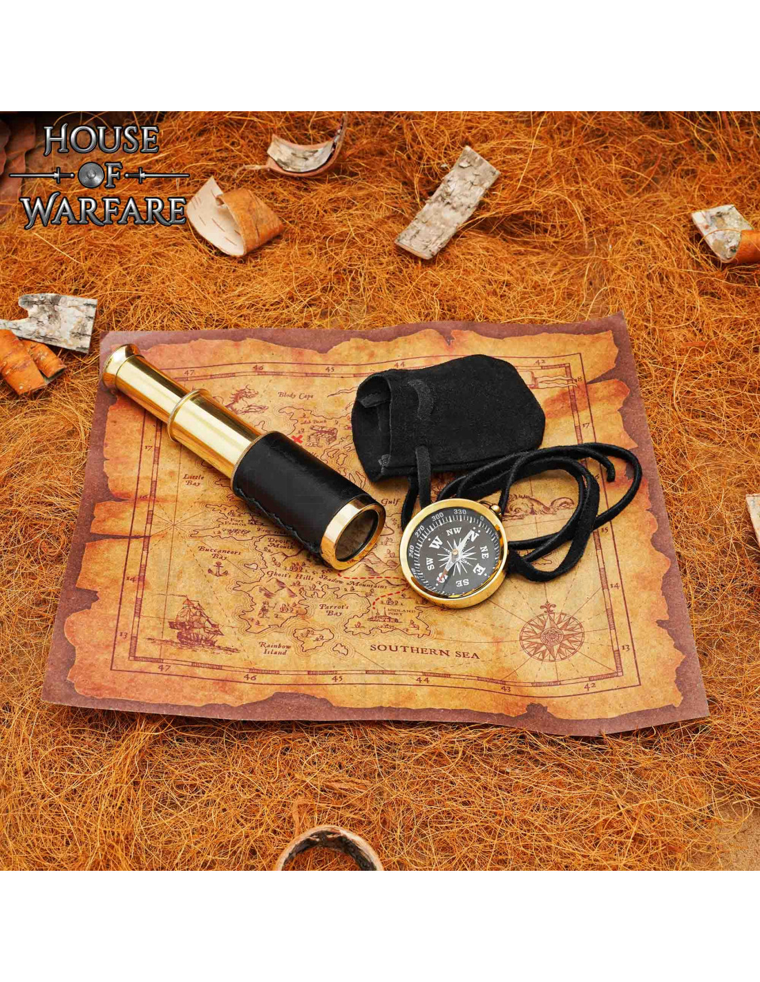 Perfeito para aventuras inspiradas em marinheiros, piratas e expedições clássicas, este conjunto é ideal se você deseja comprar Conjunto caça ao tesouro: bússola, telescópio e mapa para LARP, para cosplay ou como peça de coleção.