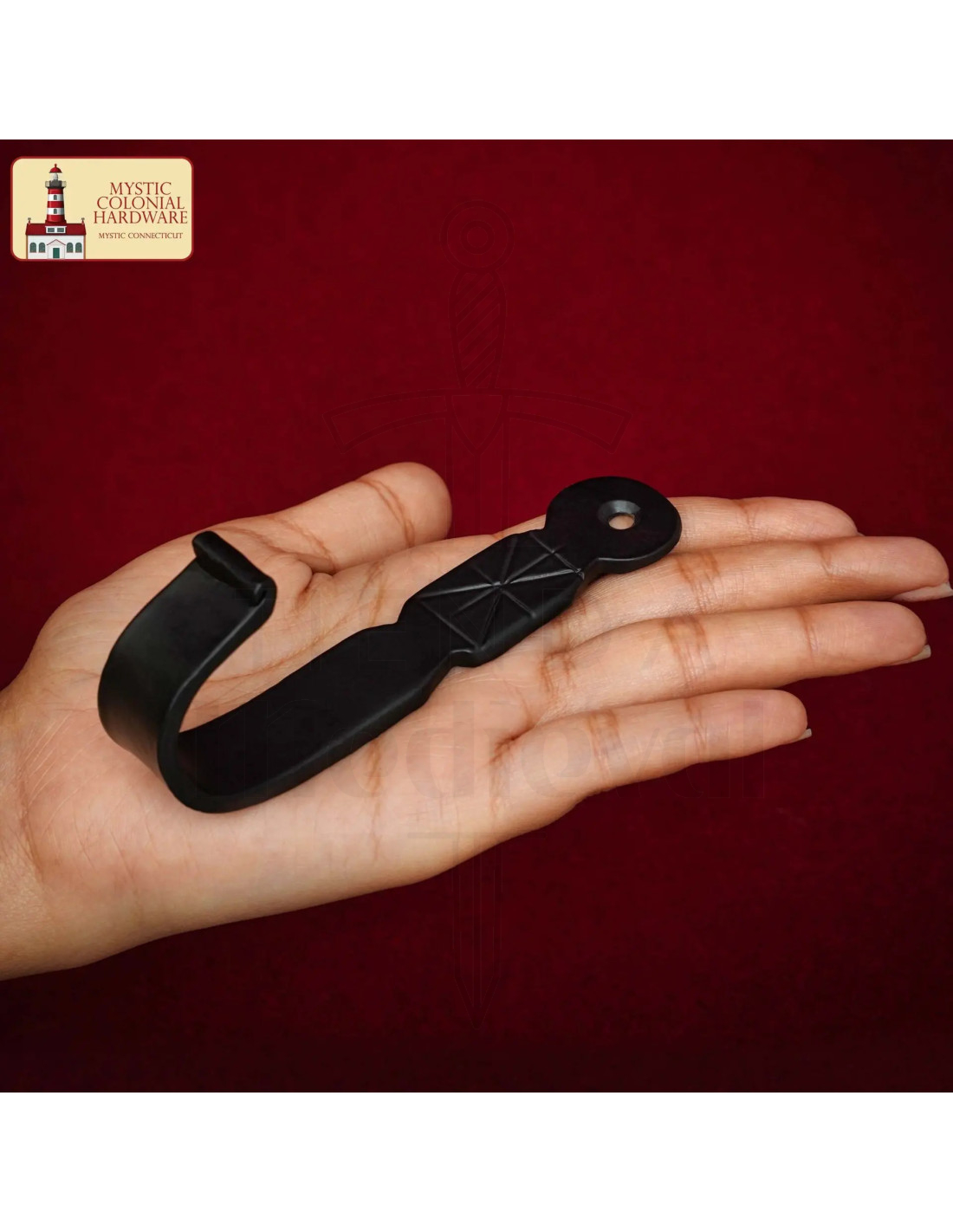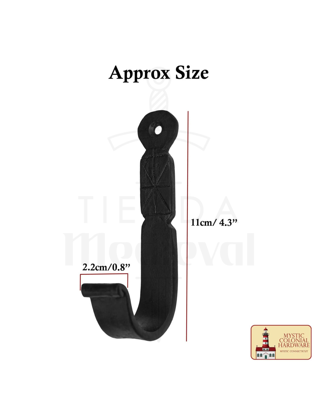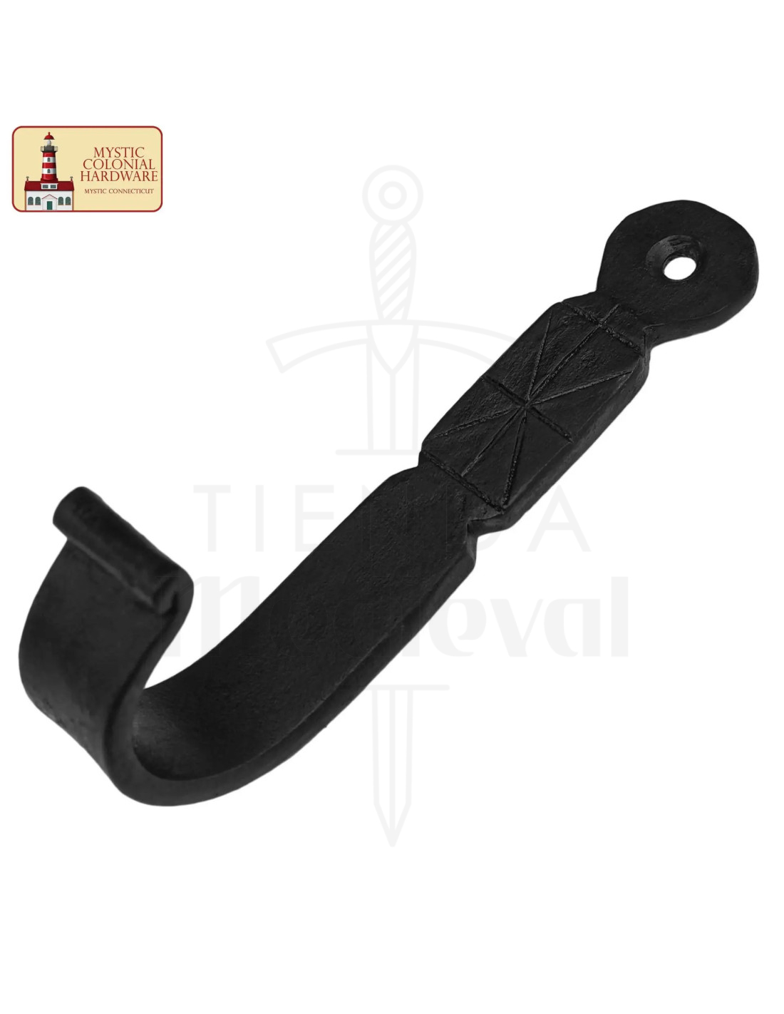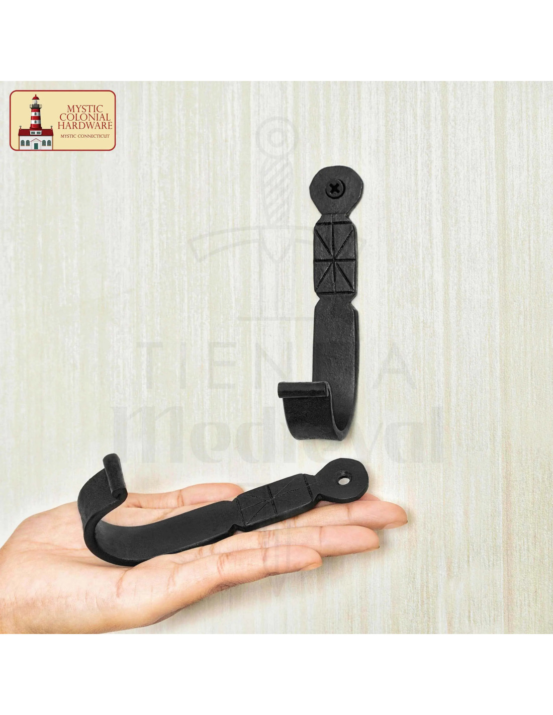 Este gancho oferece a sensação de robustez à primeira vista, graças ao seu ferro trabalhado manualmente, proporcionando a tranquilidade de pendurar casacos, bolsas e toalhas sem esforço ou deformações. Seu acabamento preto envernizado protege a superfície e confere aquele aspecto envelhecido que combina com entradas, banheiros e cozinhas com estilo retrô.